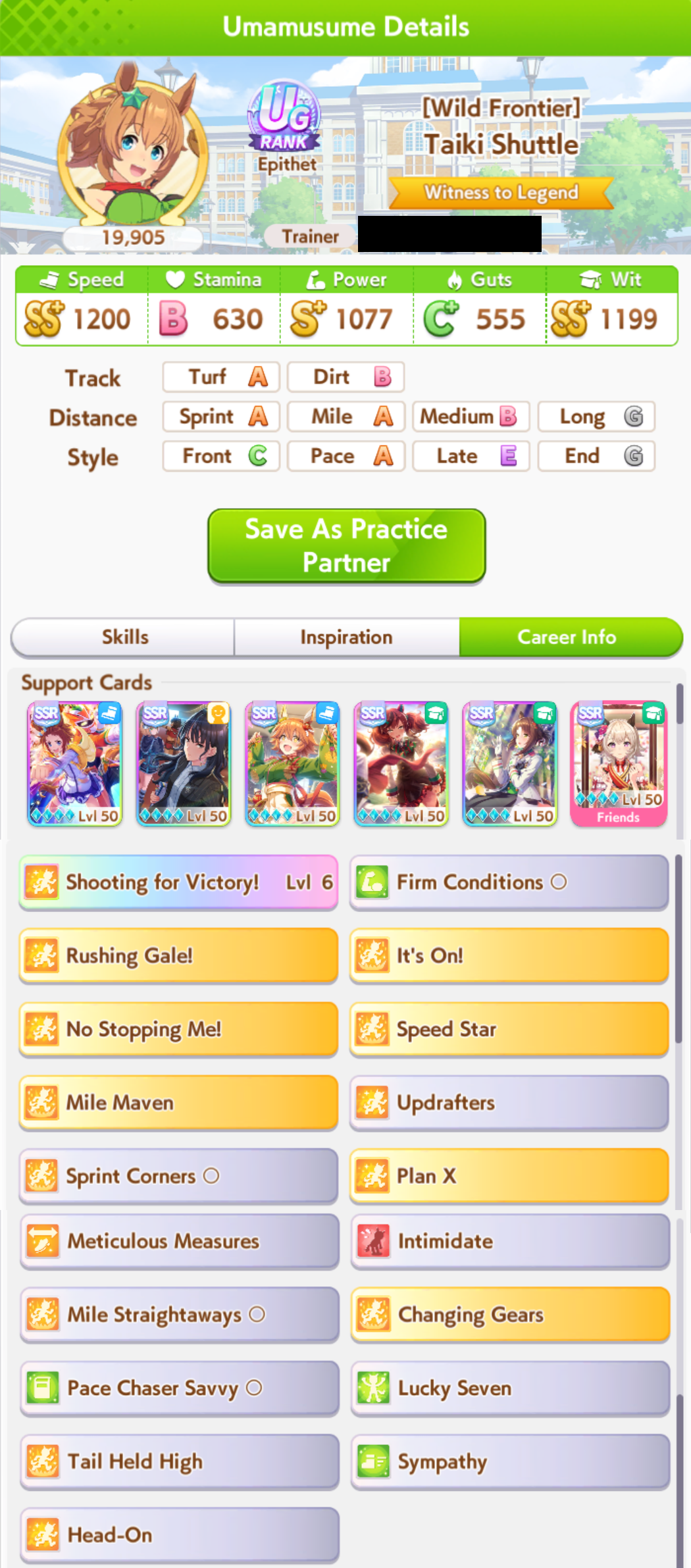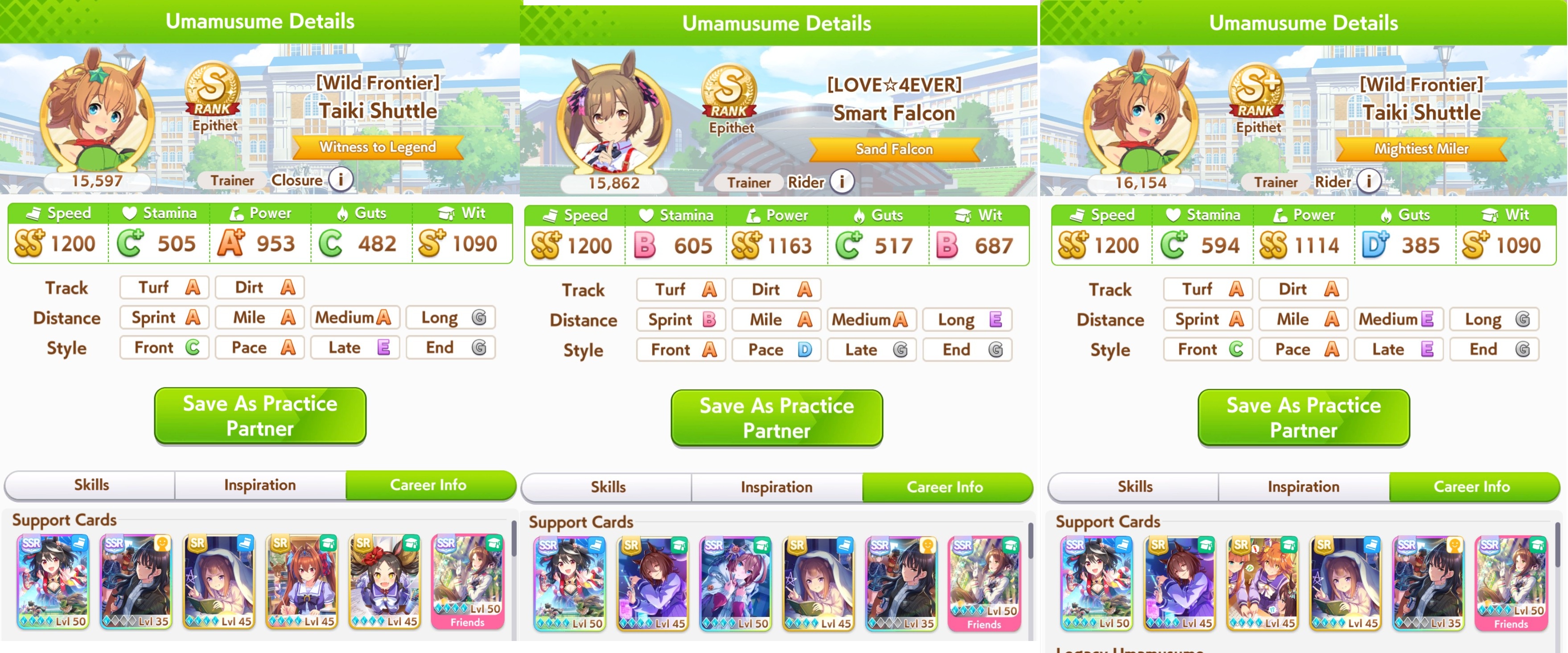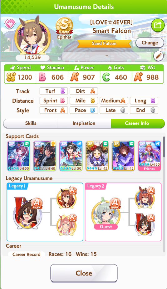 I'm running all power sparks except on my Condor she has speed 2 and mile 3. That was the best parent I got at the time. The guest borrow was a 9 star GW parent with power and mile sparks. (thanks other anon if you read this. Your borrow was invaluable.)