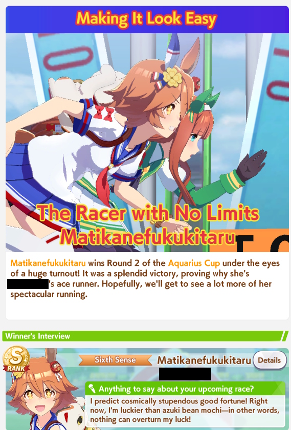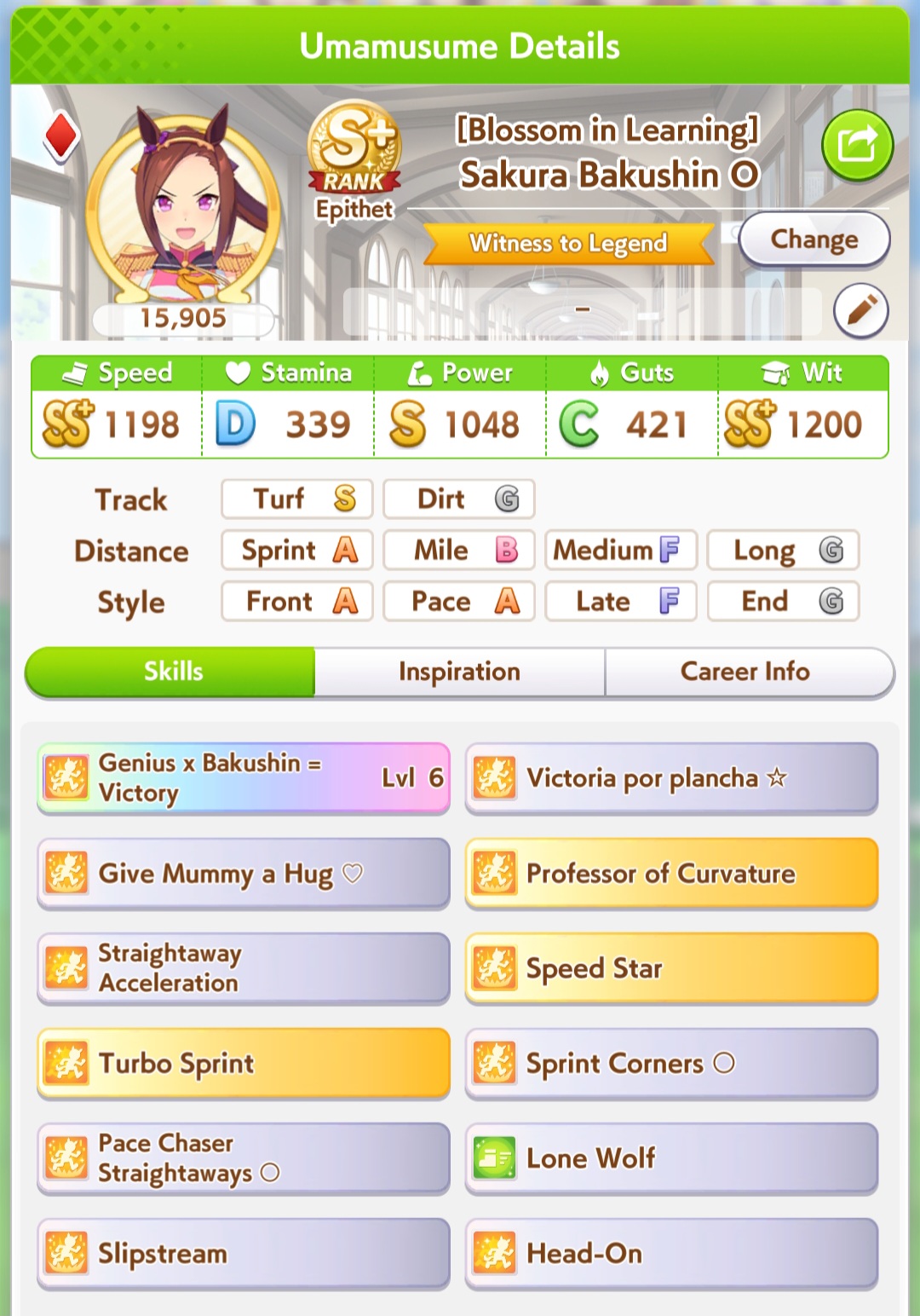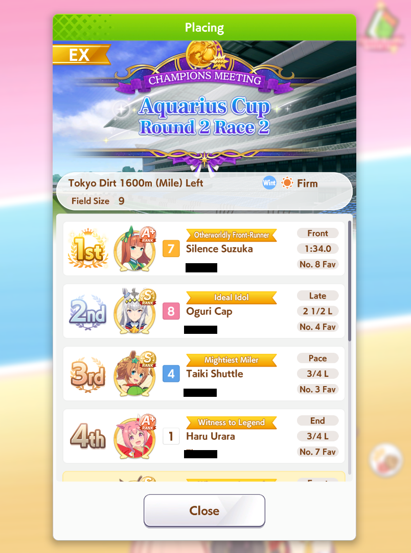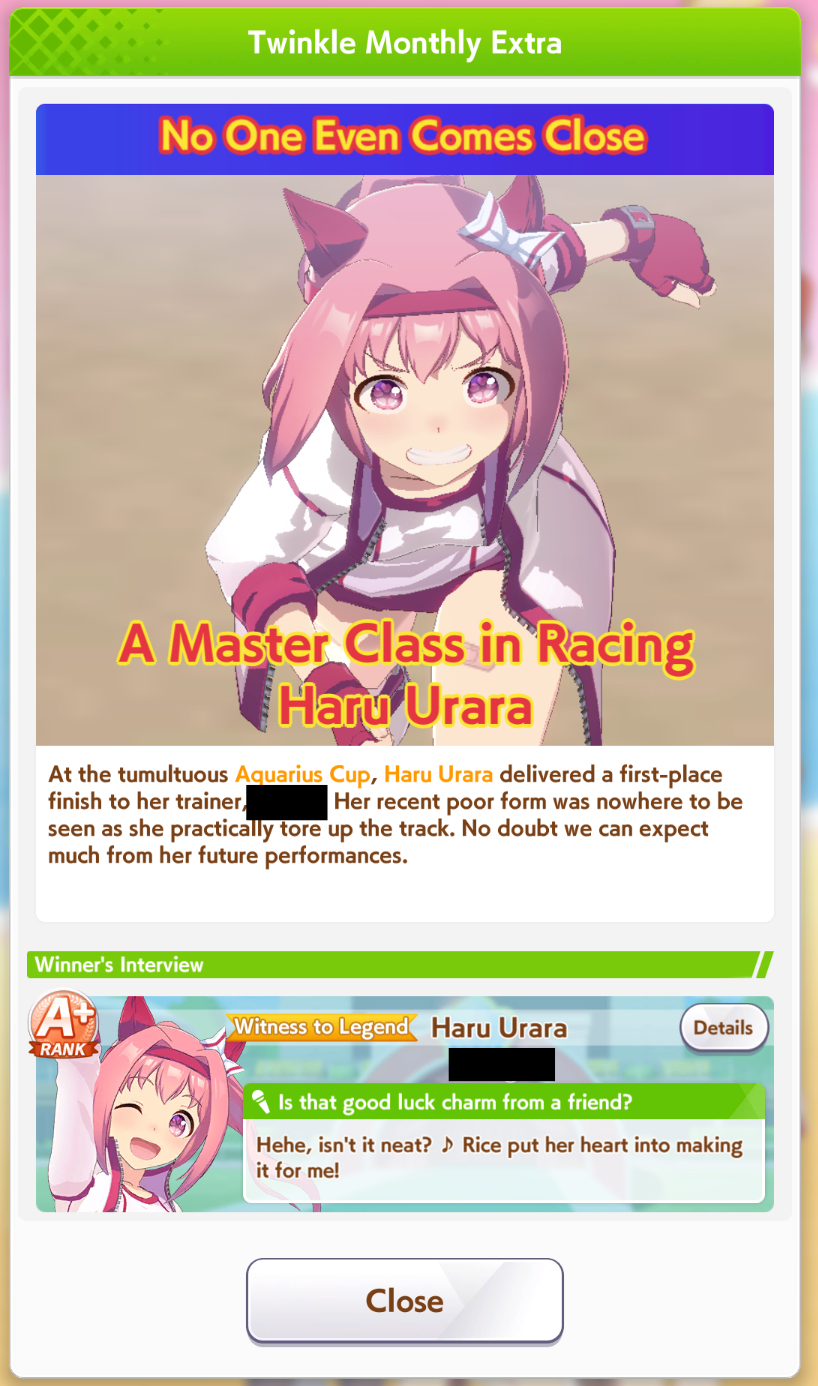 Straightaway Spurt really is broken this CM huh. I kept seeing my base Urara get 2nd and almost nabbing wins several times
