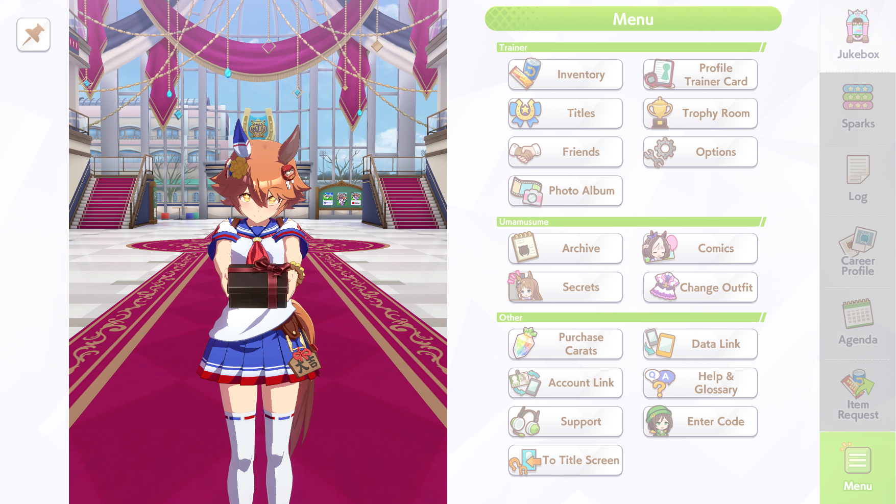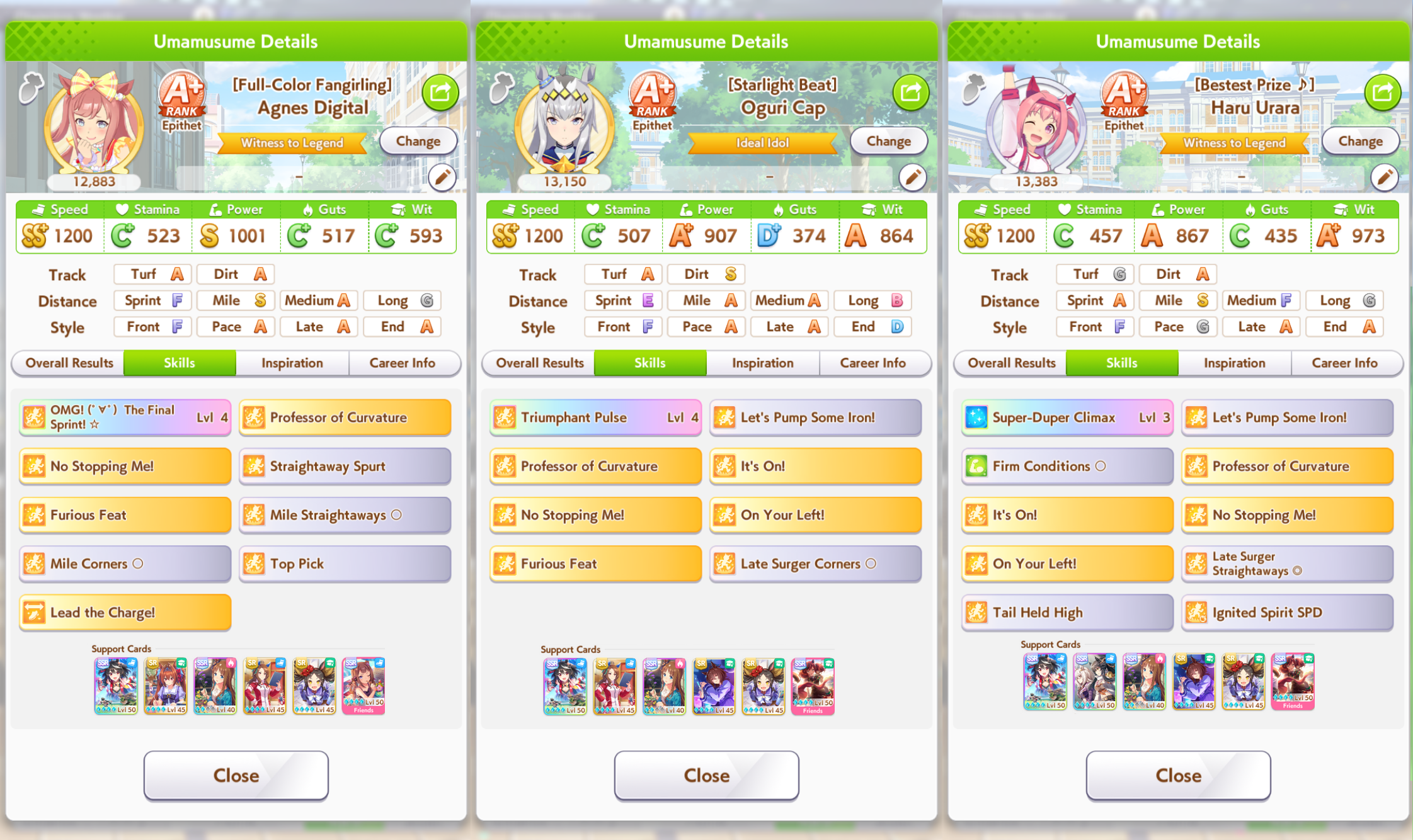 My Maruzensky is there to support Falco. She triggers her skills and has debuffs like speed eater which really helps her build a lead.