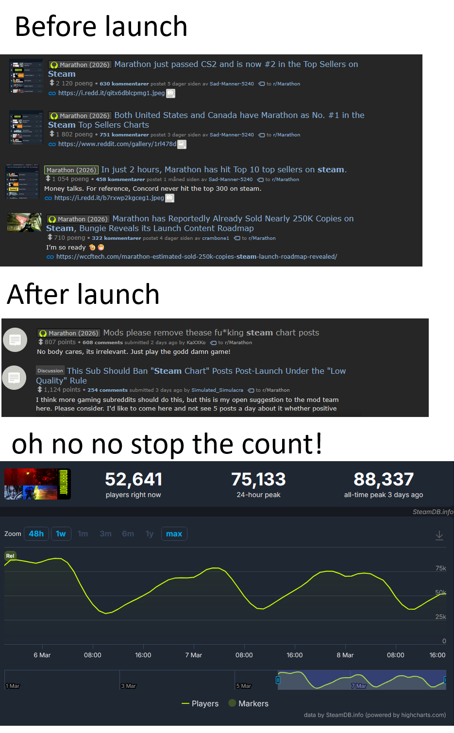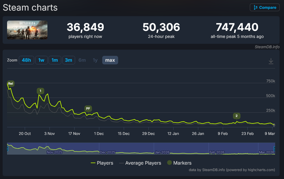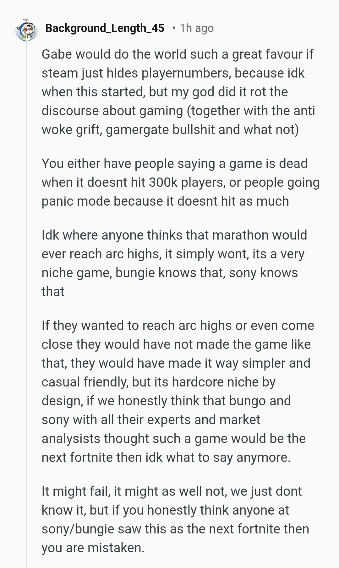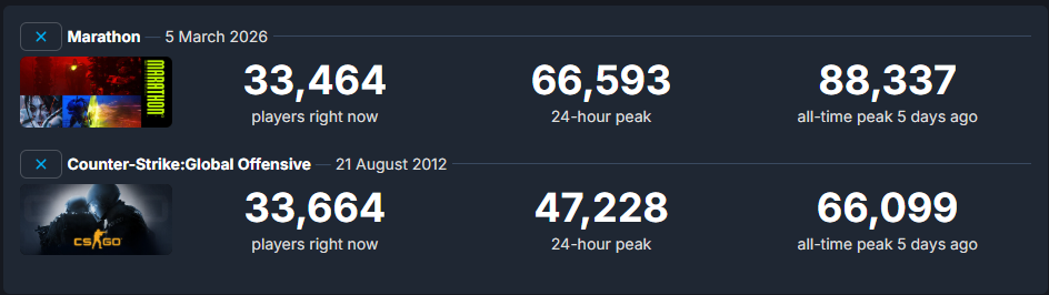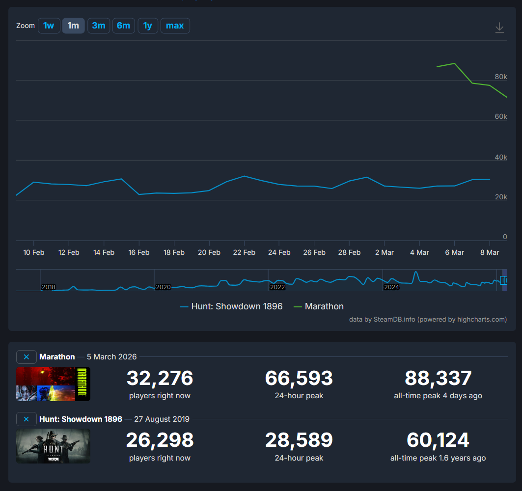 Marathon always should have at least had a robust single player mode and if it did then steamdb numbers wouldn't matter nearly as much.