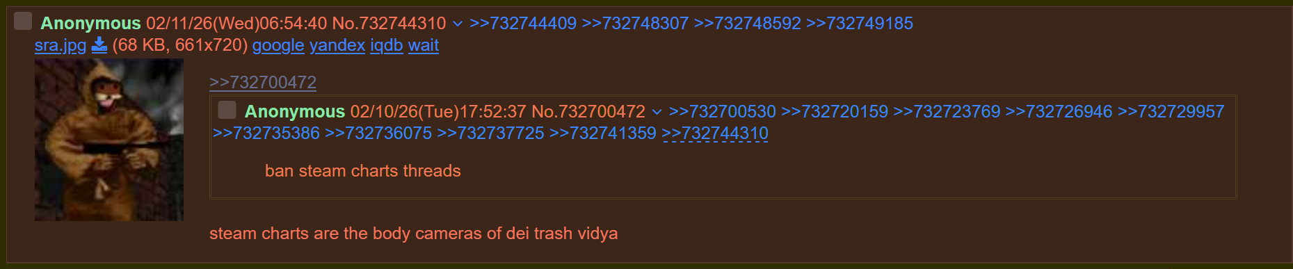 so is most of /v/ tourists who want 4chan to be a designated shitting street nowadays?