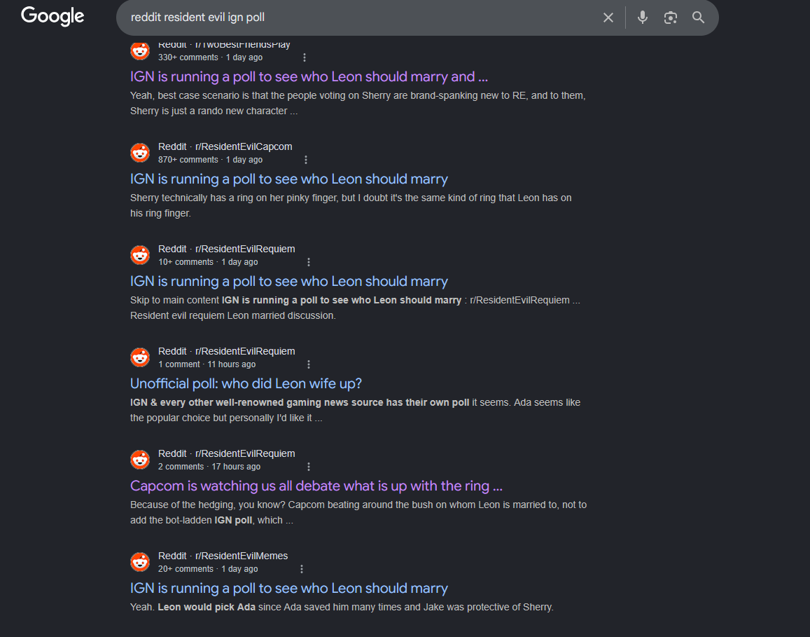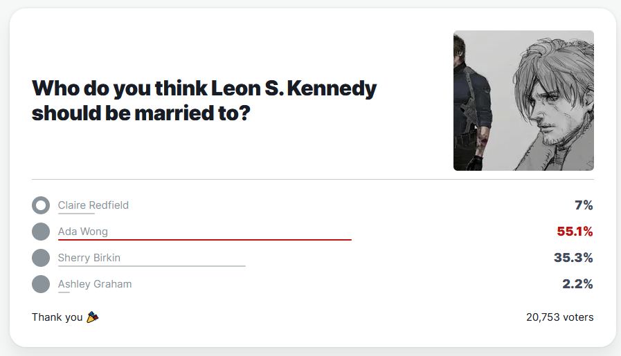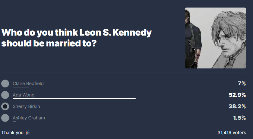 >IGN reset the poll and changed people's votes to Adalmao the absolute state of adafagshttps://www.ign.com/articles/capcom-hid-an-enormous-secret-about-leon-s-kennedy-that-youll-only-realize-after-resident-evil-requiems-credits-roll