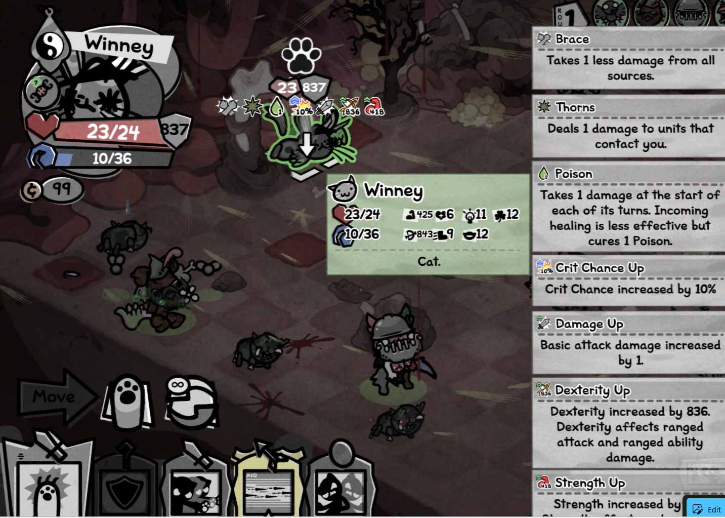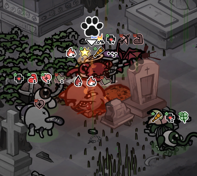 >>734730661Dybbuk is bullshit for similar reasons to Arthur>Dies from DoT damage and possesses your best cat on a 1/4 chance>Alternatively, you kill him with your best cat accidentally cause of a "lucky" critical hit>If the things lined up just right for him, you're at the end of your round and he gets 3 free actions with your strongest cat>Not only that, but he automatically fills the mana bar of the cat he possessed>It now becomes a game of if the AI knows how to use the abilities your cat has or notAgain, much like Arthur, it's a low chance that things line up for him. But if it does happen, it's bullshit.