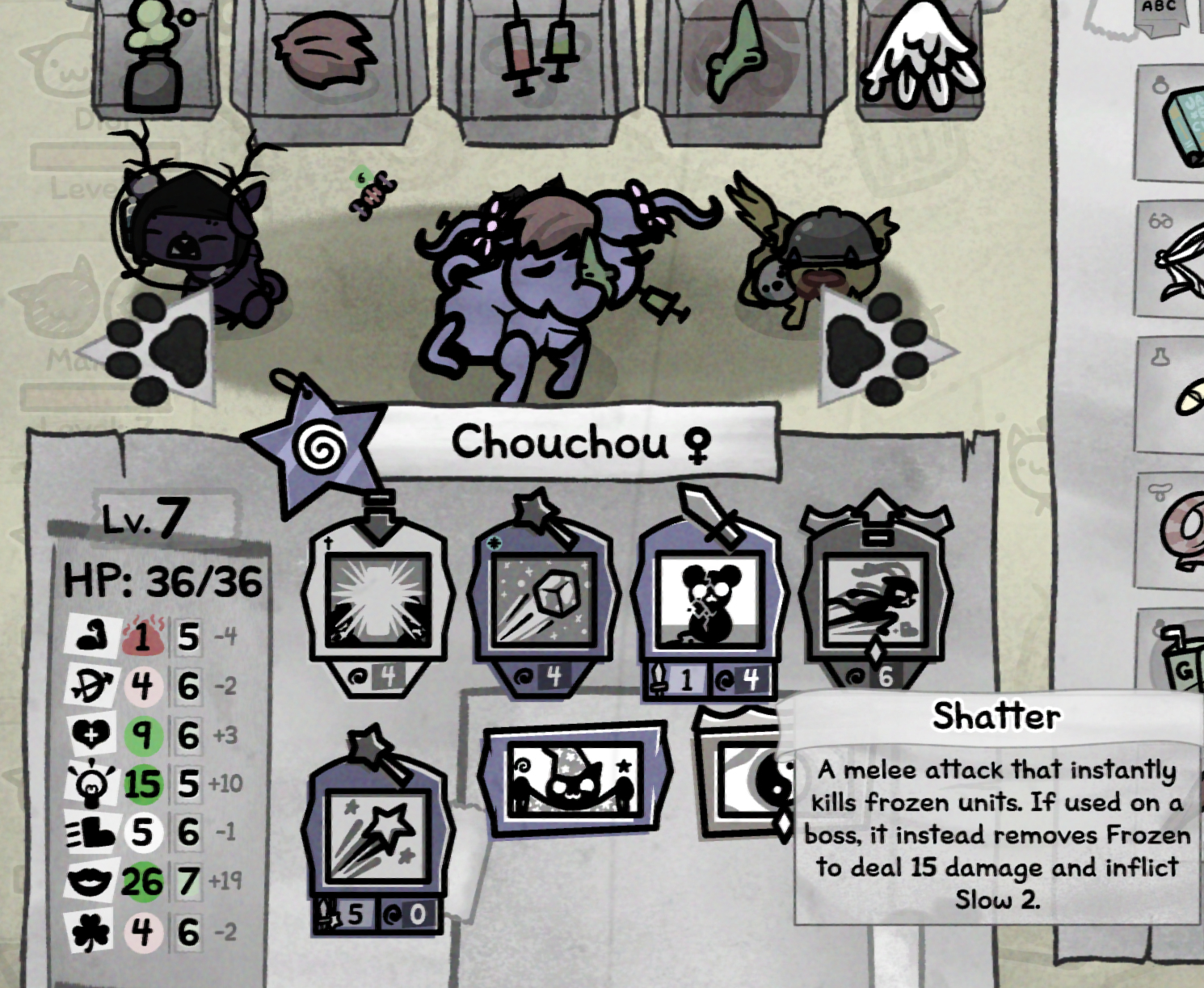 >>734726467>Or just hit him with some shit minion and the next cat can get a free hit without getting sucked anywaysThis strategy is irrelevant if you haven't passed the stat check, since he can spit out, move, inhale the pill and then attack all in the same turn.