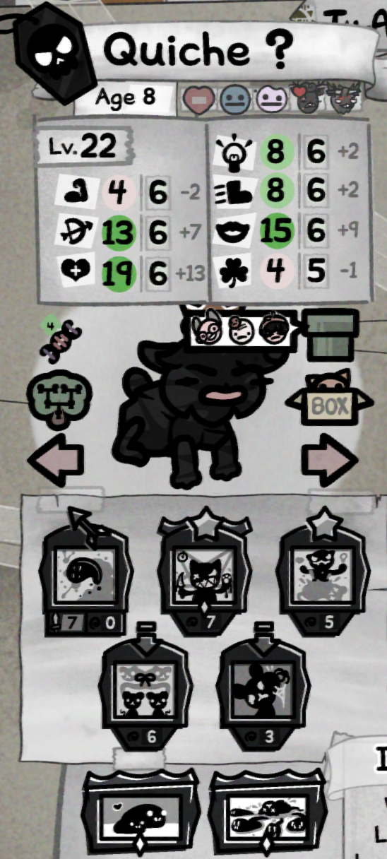 >>734729174Uh I thought you were leveling your stats with breeding cats. But I guess that's not actually important in this game.