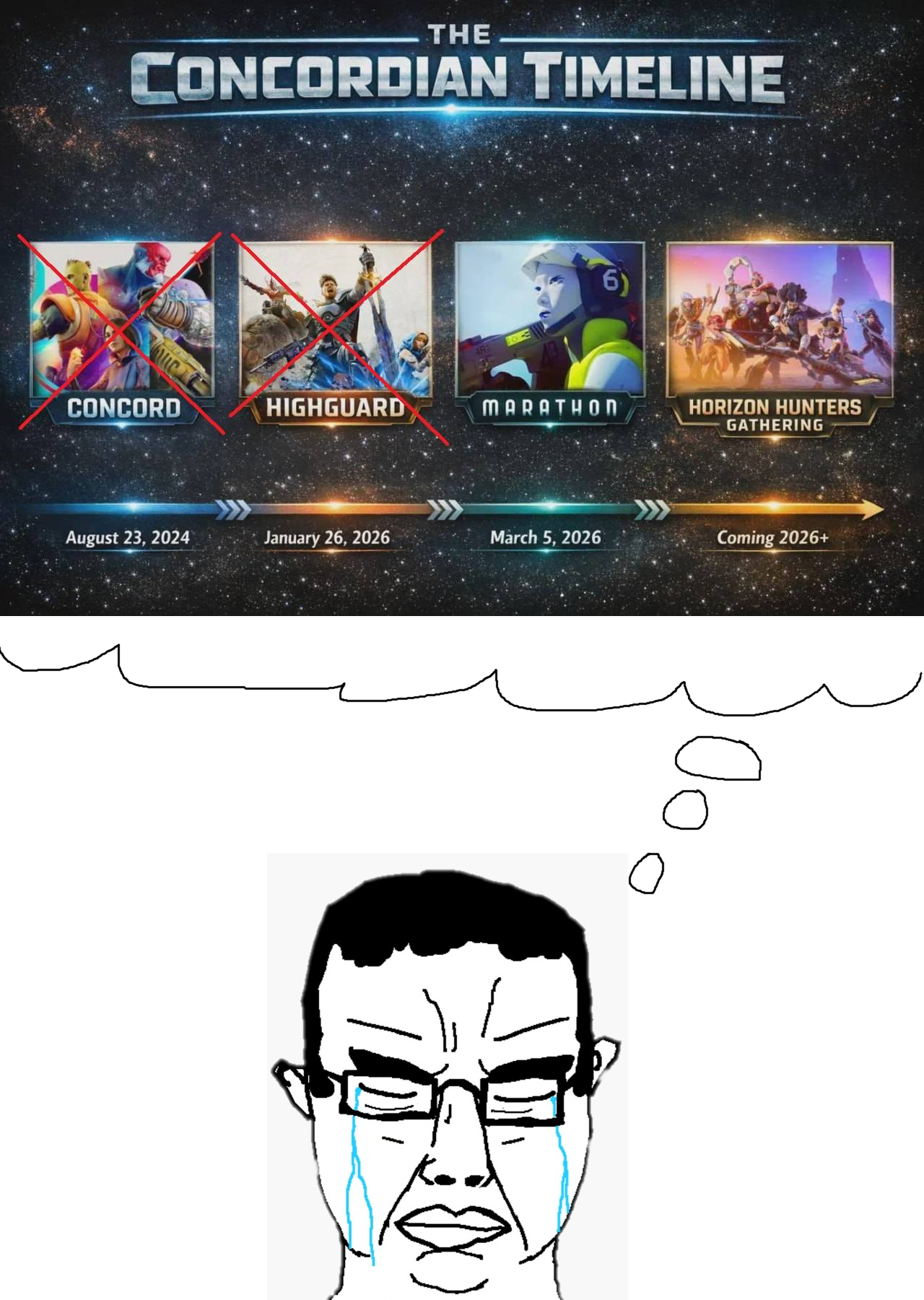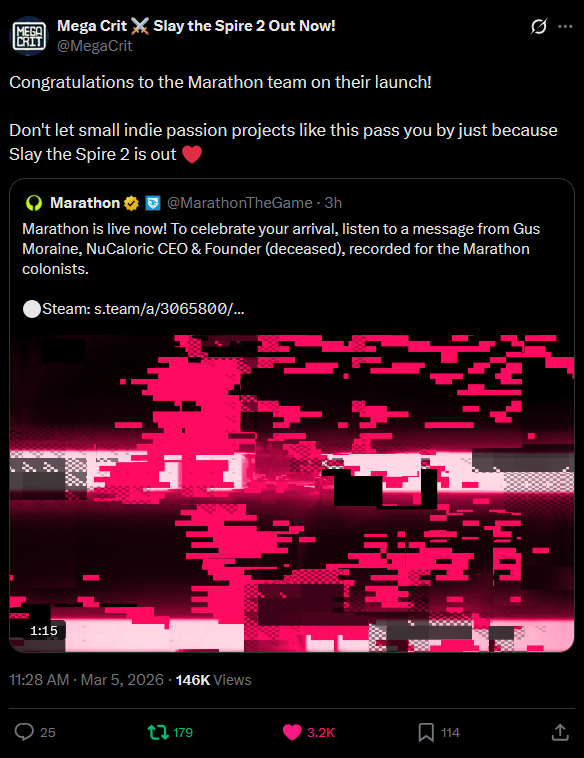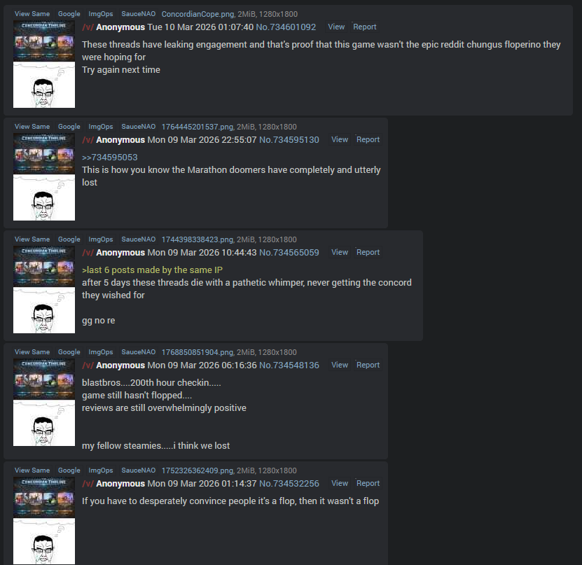 Anon, Marathon has flopped by all objective metrics. Its player counts are woeful for a game of this budget, the population is trending down and has been since launch, Bungie is clearly panic responding to things by changing their MTX plans and adding more skins to the current season pass (just like Highguard did with its 5v5 and new hero ahead of schedule), and the usual suspects are running the pre-death 'g-give marathon a chance, guys..' journalist posts.