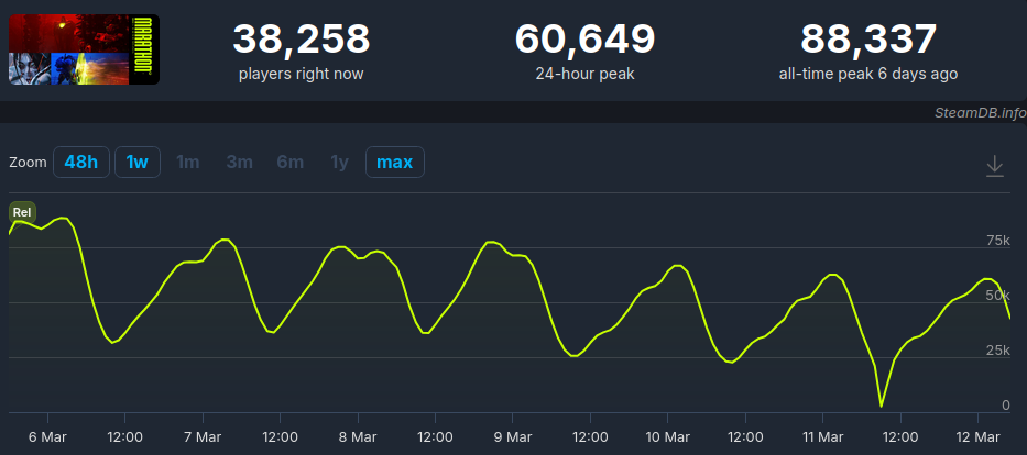 How exactly do you see Marathon jumping to a 100k+ playercount at this point, which is the bare minimum of what it needs to meet expectations?