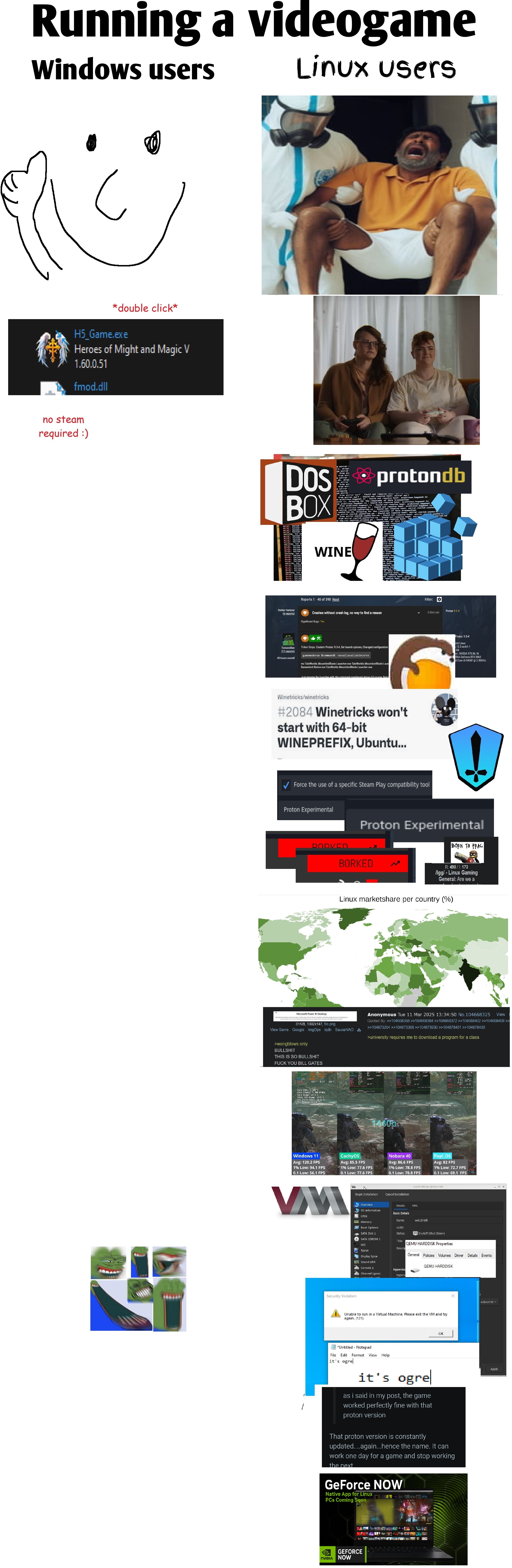 Do your own research instead of biased sources. People on /v/ shilling Linux and people on youtube saying "You're an IDIOT for using windows. Here's why Linux is better" are not the best sources of information. They don't play games. Linus Tech Tips is a cuck who makes videos about tech, not games.