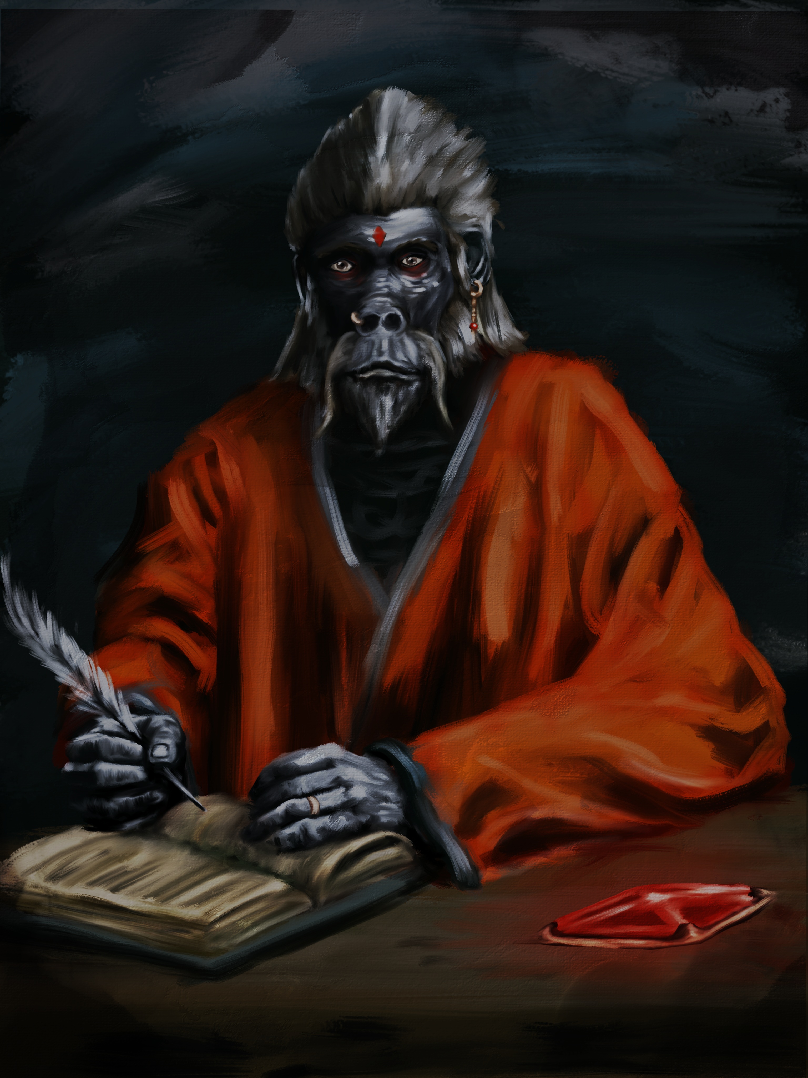 I beat morrowind for the first time last night. I drew a picture of my character to commemorate it.