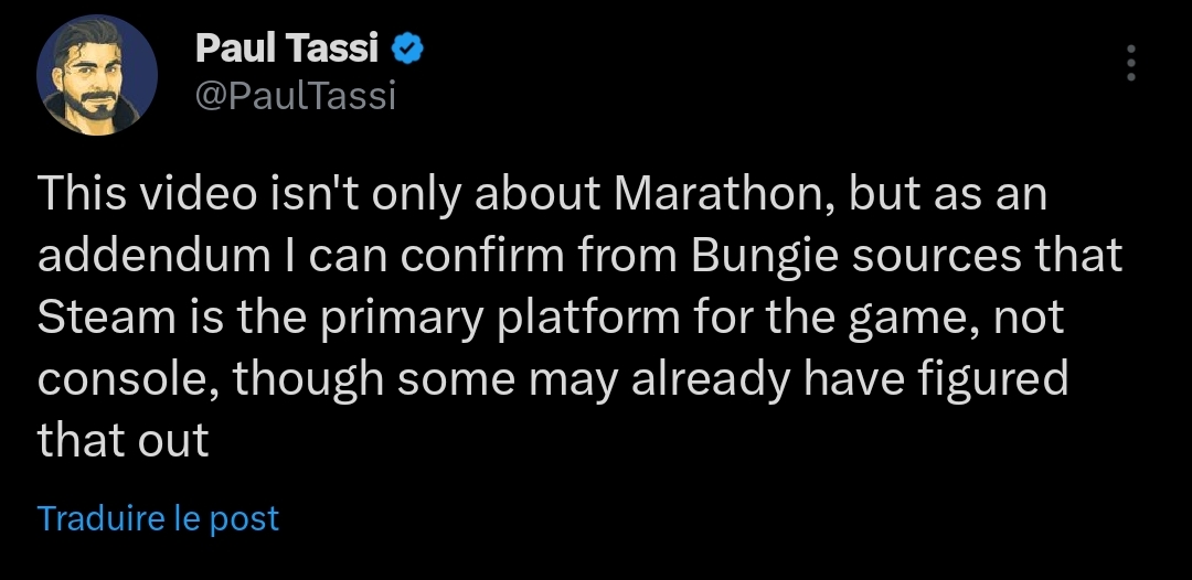 >>734926680the biggest bungie/industry glazer has bungie sources and says the game is mainly on steam means that the game is mainly on steam.if you think hes lying thats fine you can believe whatever you want but there is no evidence that he is or reason to believe that he is especially given his history.if he is saying "the ship has a very small hole and is taking on a little bit of water" then you can be sure that they hit an iceberg and are currently breaking in half.