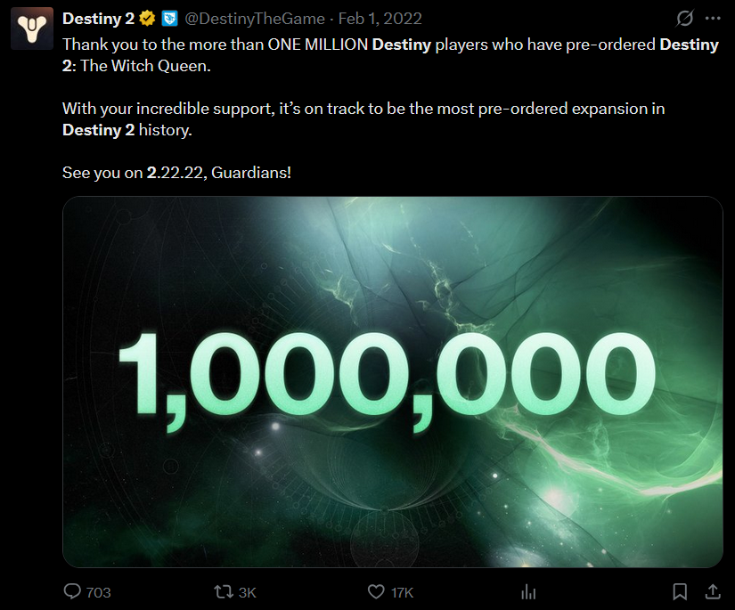 did they post something like this? No? Then it didn't sell shittotal bungie death