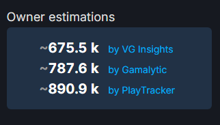 >>734919118No it didn't.Gamalytic does nothing but speculate and they are often wildly off when it comes to a new release title.They tend to be more accurate when it comes to quarterly data or longer than that.