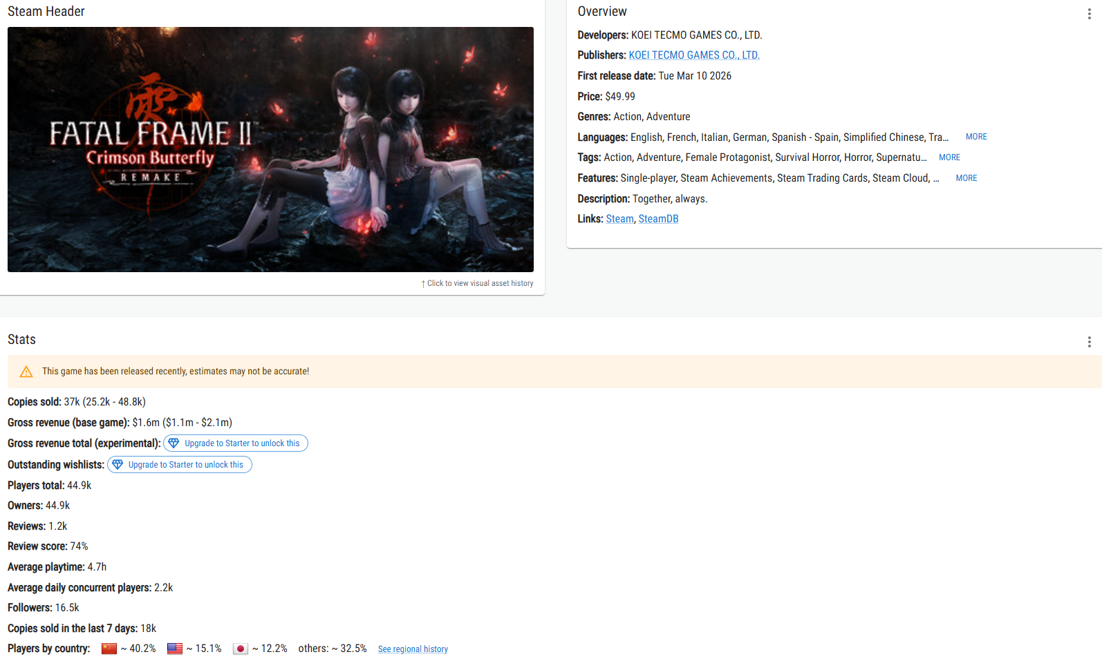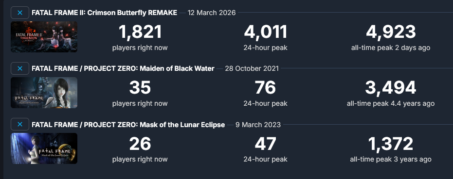 >>735007115Did about the same as Fatal Frame 4 and 5 steam releases.