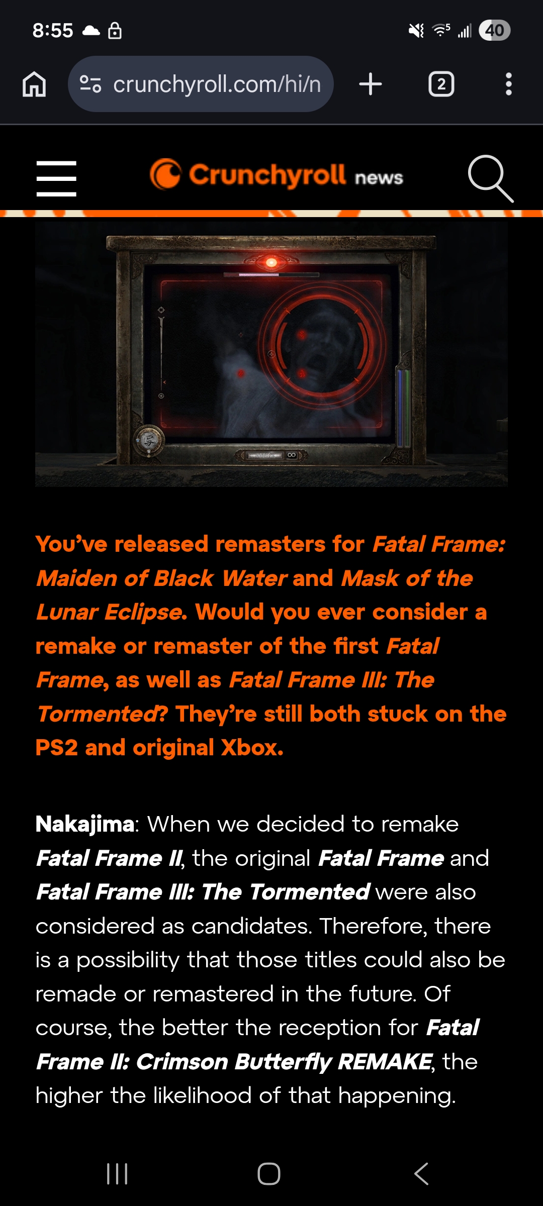 >>734961795fatal frame 2 lost to nortubel