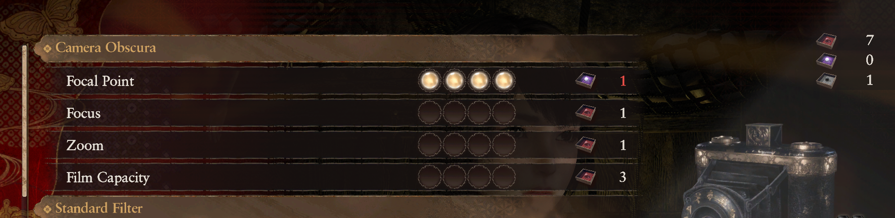 >>735002418Shit ton of damage and a charge-up special attack that does even more damage. Downside is, is that it takes longer to reload film. Using the radiant filter and Type-00 film I managed to one-hit KO the final boss.