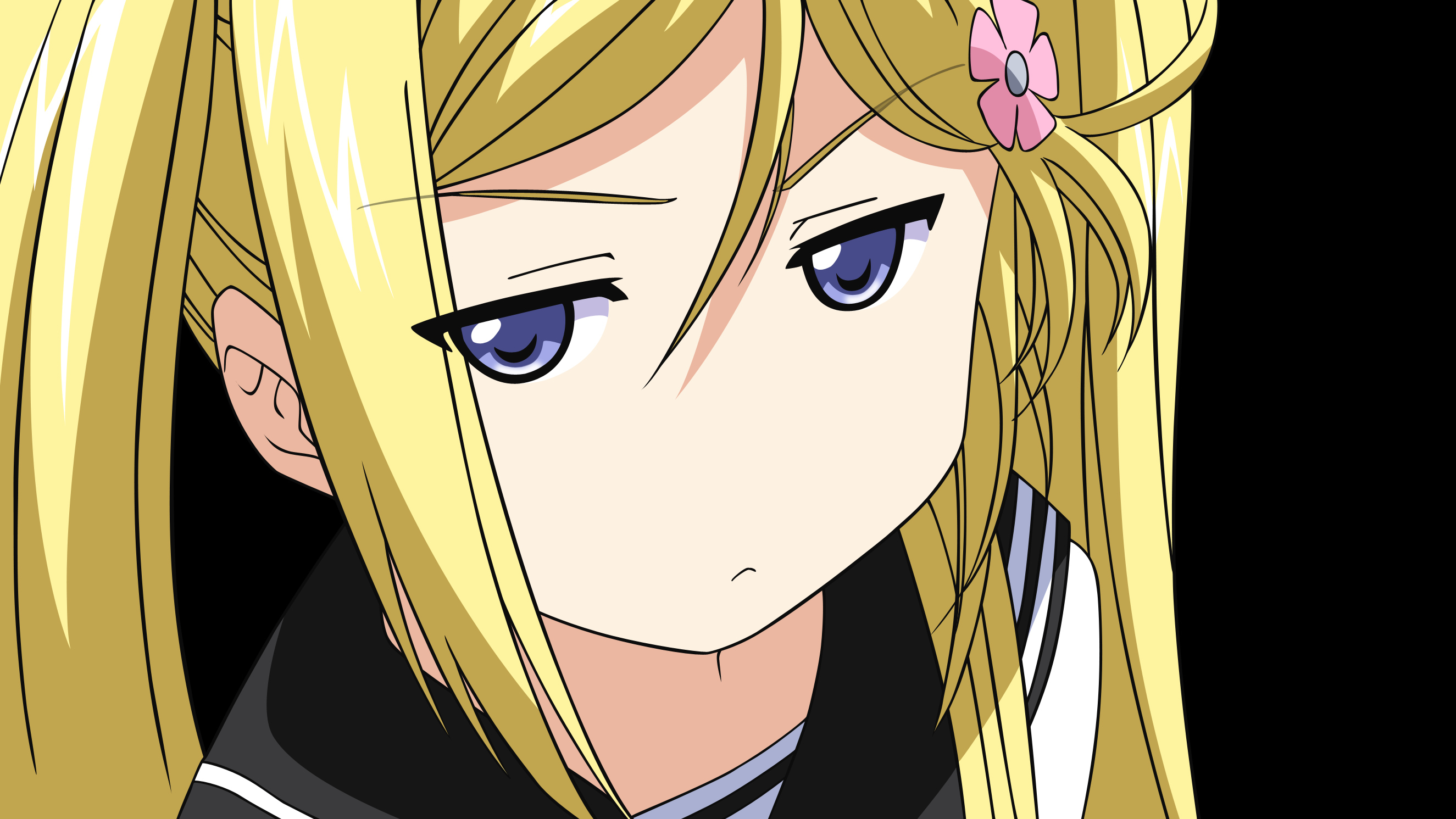 combo of long blond tails and black outfit is just great