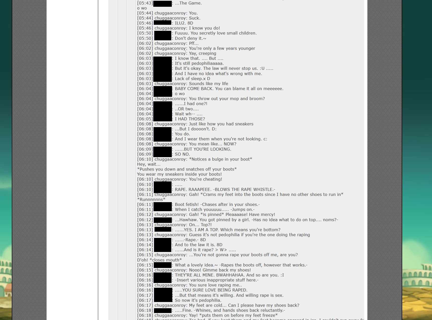 I gotta respect Chugga for sticking to his guns regarding shoes. Anyone else would've just tried to completely stop talking about their obvious fetish but in the Kingdom Hearts let's play he just doesn't shut up about Sora's shoes.>>734998085Just a bunch of twisted psychopaths in his twitch chat desperately trying to turn Jon into one of them.I keep hoping one day he'll realize the error of his ways but I doubt that'd happen until the day he stops streaming. His "i'm a girl tehe I raised my voice pitch and keep talking about sex and boobs because i'm a real lady!" is ruining TRG