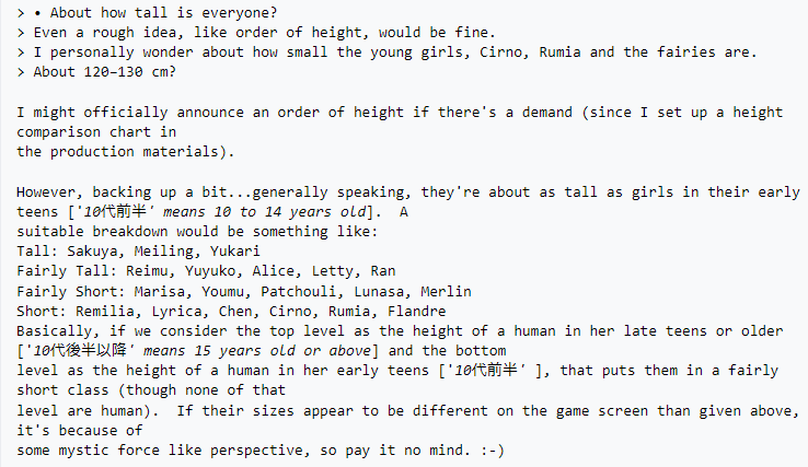 >>735025937No because Japan has different standards for height. People there are overall shorter than in the west.Half touhous are average height for Japanese females. While a good chunk are below average