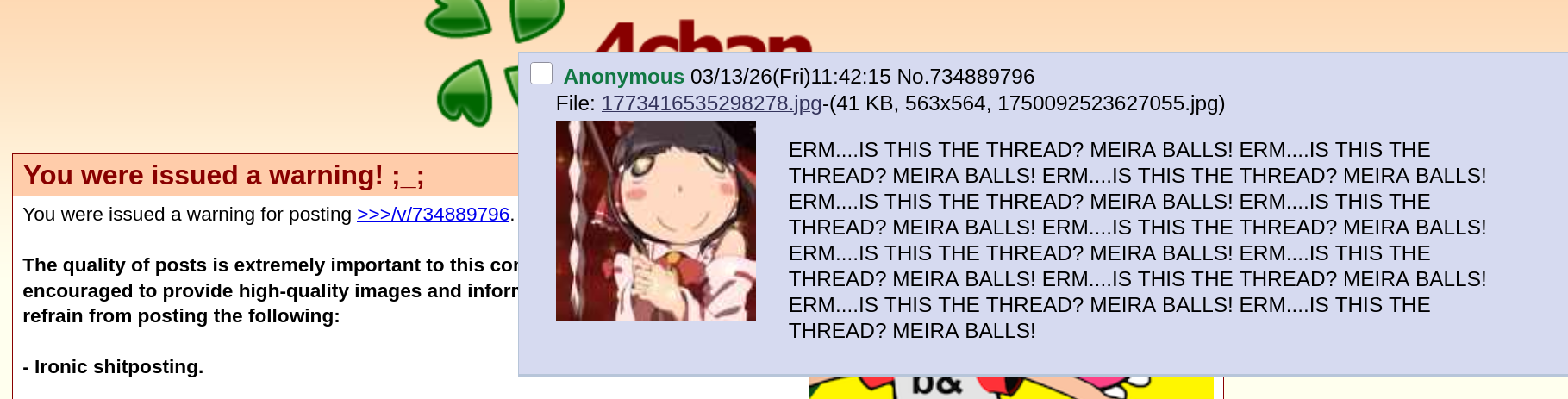 >>735026692>>735026934Cry about it in meiracord