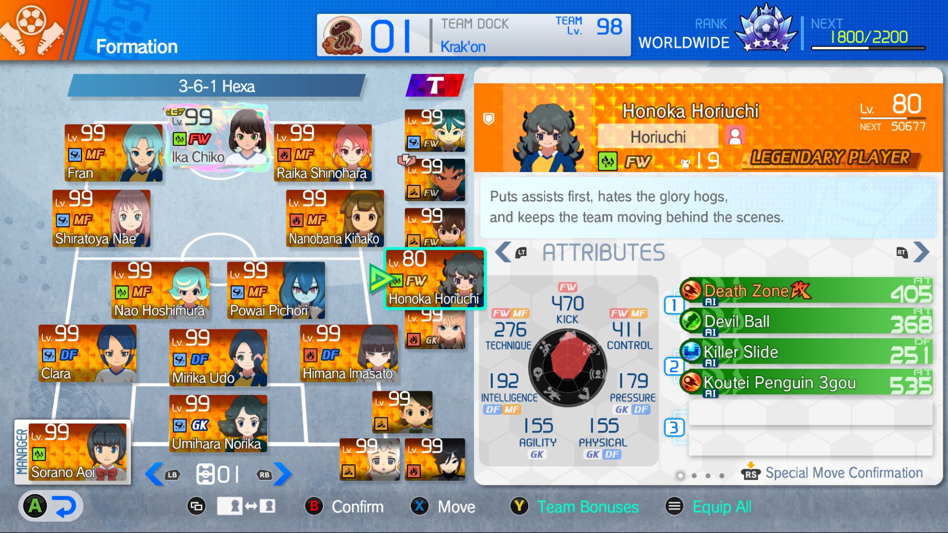 >>735005690I also posted it fairly recently, but I guess since then Horiuchi officially took Midorikawa's spot in the main team and he's now in the secondary one. Really wanted a Tenkoku themed character after spending so long on the Penguin team, and she's cute. Also she makes Death Crusher Zone possible so that's also cool, just wish she had voicelines