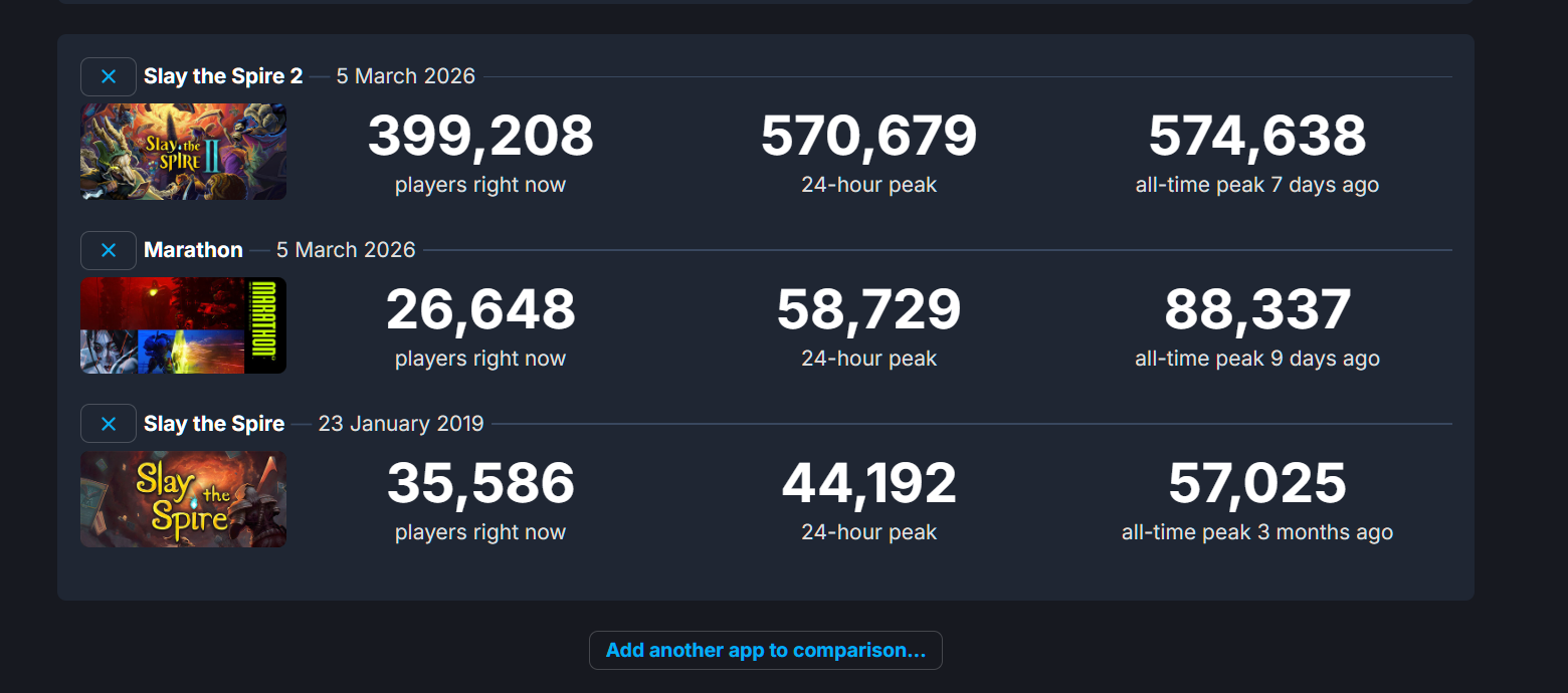 >Siege was dead because it had 80,000 concurrent.>Helldivers II is the most popular game in the world because it has 40,000 concurrent.>The Finals is respectably niche because it has 20,000.>Marathon is dead because it has 55,000 concurrent. All of this shit is so stupid bro!