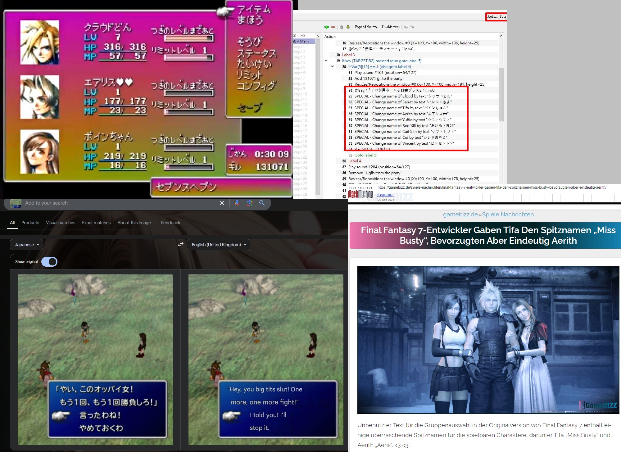 >>735005563Did this person create the content of Tifa being a prostitute and included it in the original game files? Or how do they relate to this thread?