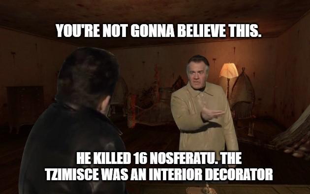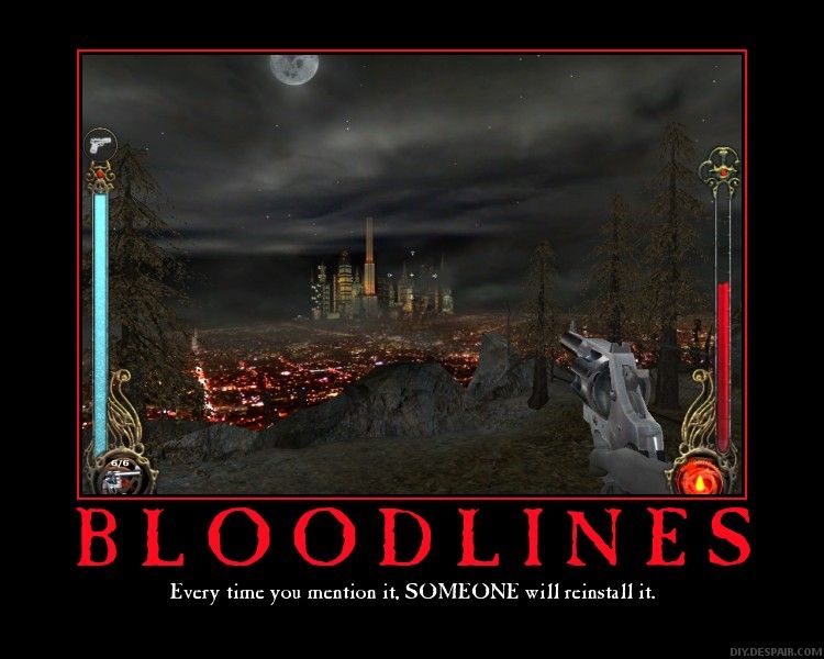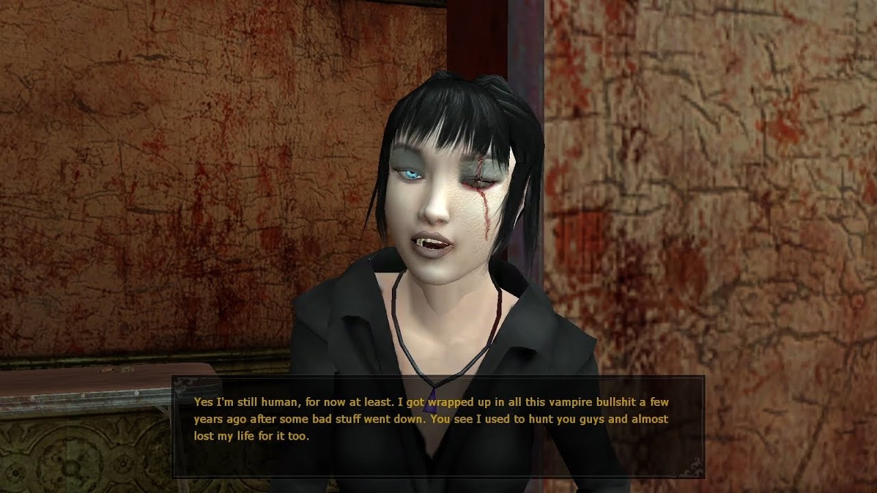 >>735037140Are you nuts?You wake up from being bit mid coitus before someone bursts into your hotel room to stake you and your fuckbuddy.You're dragged to some gothic theater where said one night stand gets their head chopped off and turns to ash.You go to a clinic with a blood bank and the clerk is some Hannibal Lecter wisecracker with a torture chair in the back to drain as much blood from someone without killing them as possible, failing doing business with his kind you're fixin to suck necks up and down whatever alley you stroll down.Except LA is being infected with a plague spread by even more psychotic than usual bloodsuckers.You kill undead in a Hollywood cemetery, a werewolf in the woods and hunters in caves, Chinese demons are selling you dark secrets in novelty shops, Uncle Andrei's rearranging furniture and the whole time the father of vampires might be driving you around.VtMB's filled to the gills with lore and encounters.