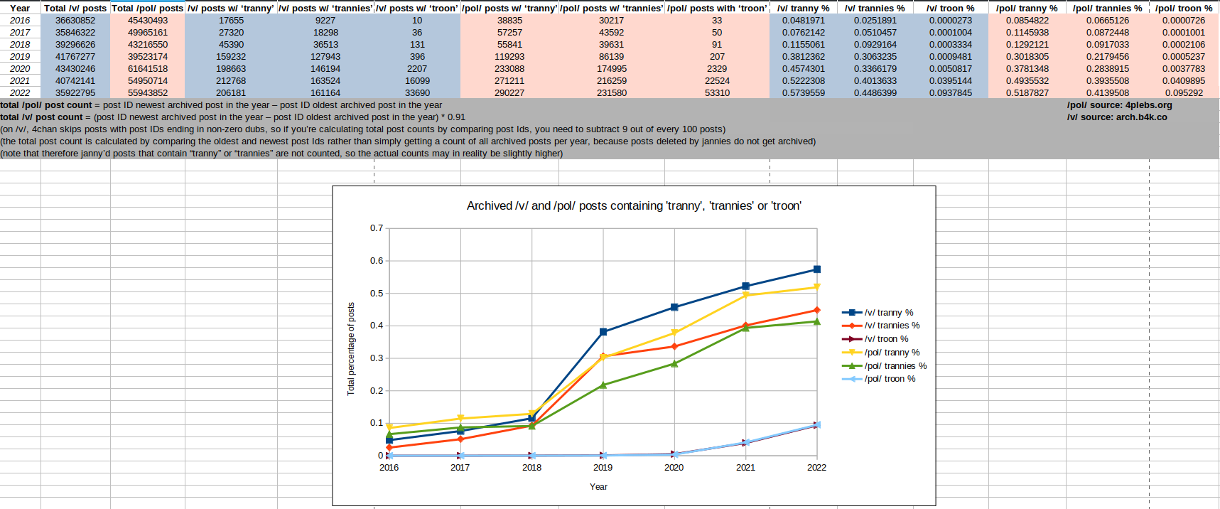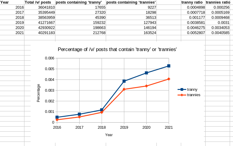 >>735039576>>735039652I’d like one with 2023-2025 figures as well partly to see how much numbers “Troon Vegays” and “Troonout Neo Vagina” posts add.