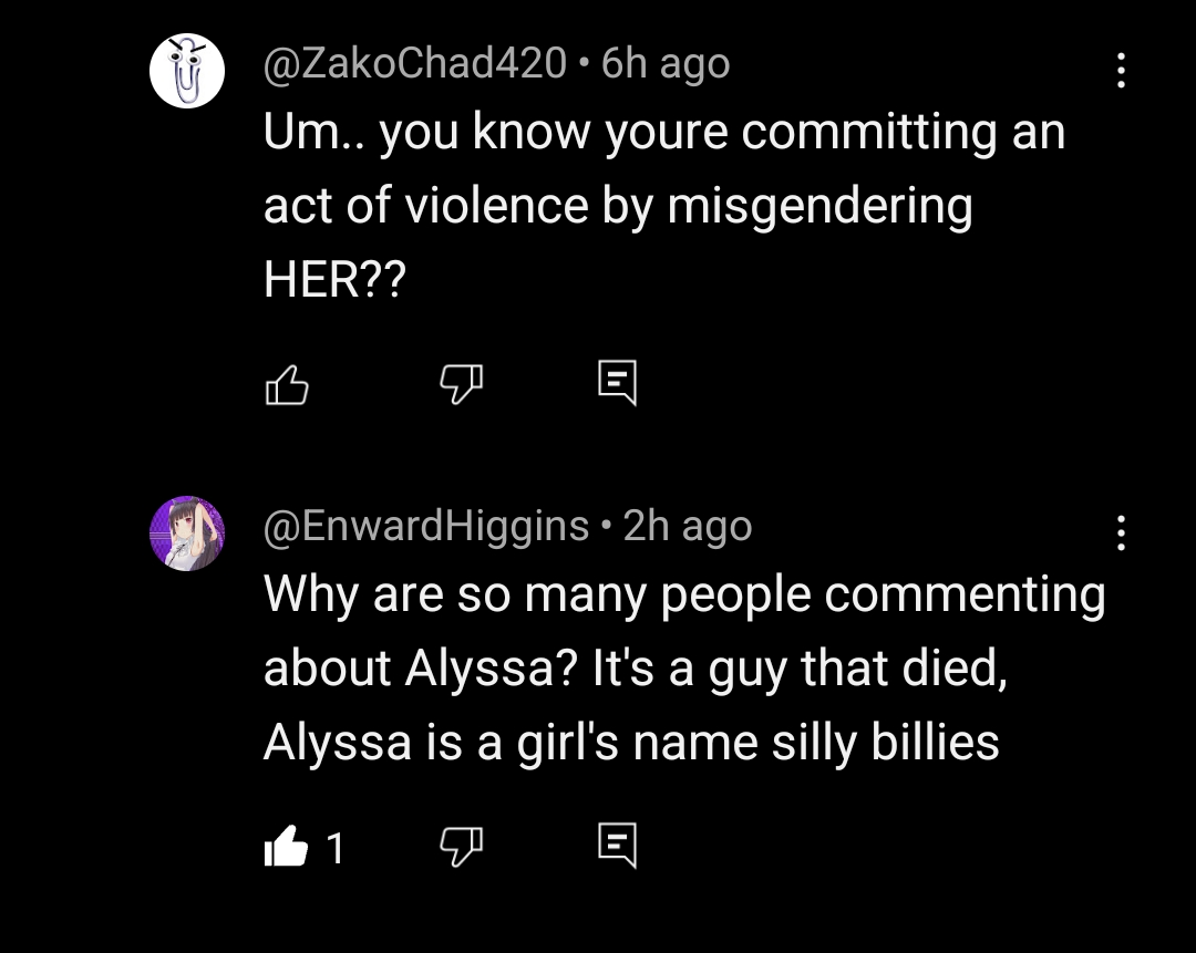 >>735008047>>735008149No one is going to entertain you as a woman. And these idiots are told that people would, then they get depressed and kill themselves. Supporting trannies is evil as fuck.