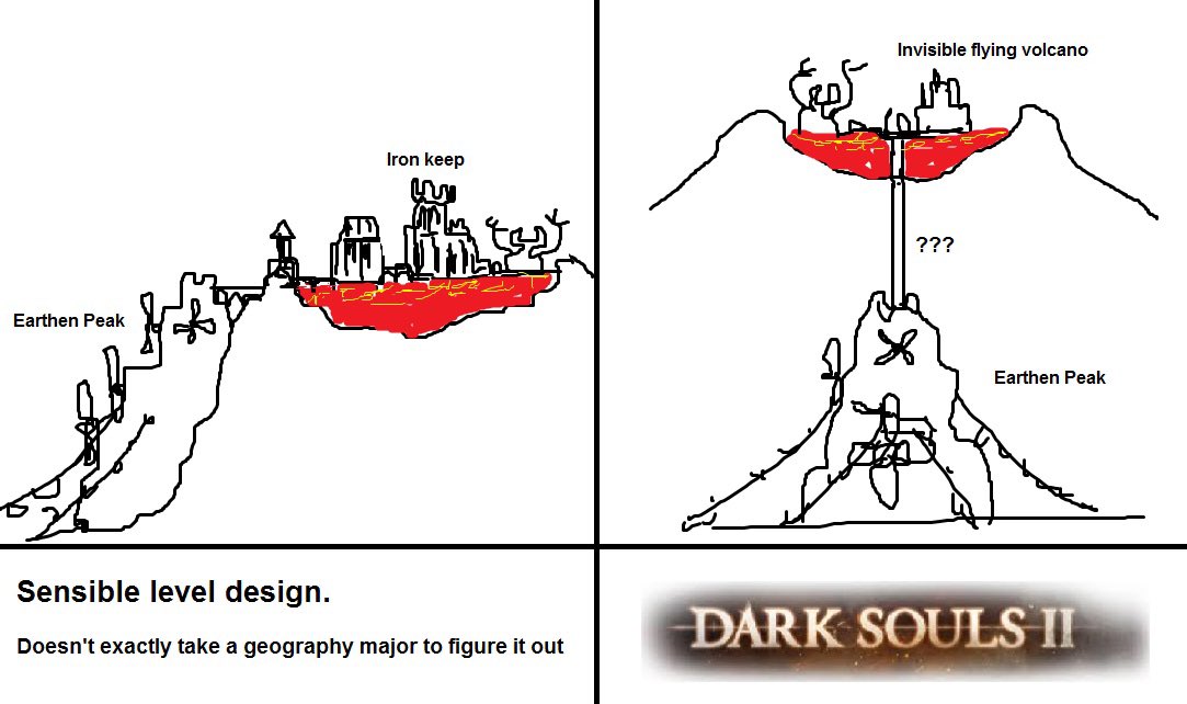 >>735010734Anybody who's played bloodborne (me included) knows it's weaker than DaS1 and Das2It was a slog to playDaS2 will always have a special place in my heart for having the best town/hub area of any game and having the best dlc. Also, Hawkshaw put out a video recently covering the Dark Souls 2 map. It was a pleasure to watch. Obviously, the distances covered between areas are scaled down significantly gameplay wise in contrast to lore-wise as a design choice since long walks meant to signify going across the country or a mountain range would be boring to walk through if scaled properly. The dark souls 2 journey takes place across a huge continent and the dlc maps are different countries/kingdoms>>735012641Correct. The movement is shit. In bloodborne, your character moves worse than an obese lardass moves in real life and sidesteps like two inches when you hit the evade button. The animations are shit too and the game is locked to 30fps on console. The pc emulation version with patches is the best version of the game and I like the story, but it has the worst gameplay of any soulsborne game.
