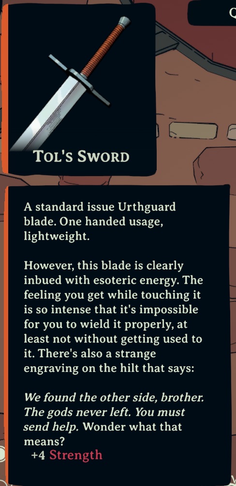 >>735023540>>game drops the single best strength weapon for you>>ends immediately after>What is the point?It's not though? It's only +3, Tor's blade is +4.