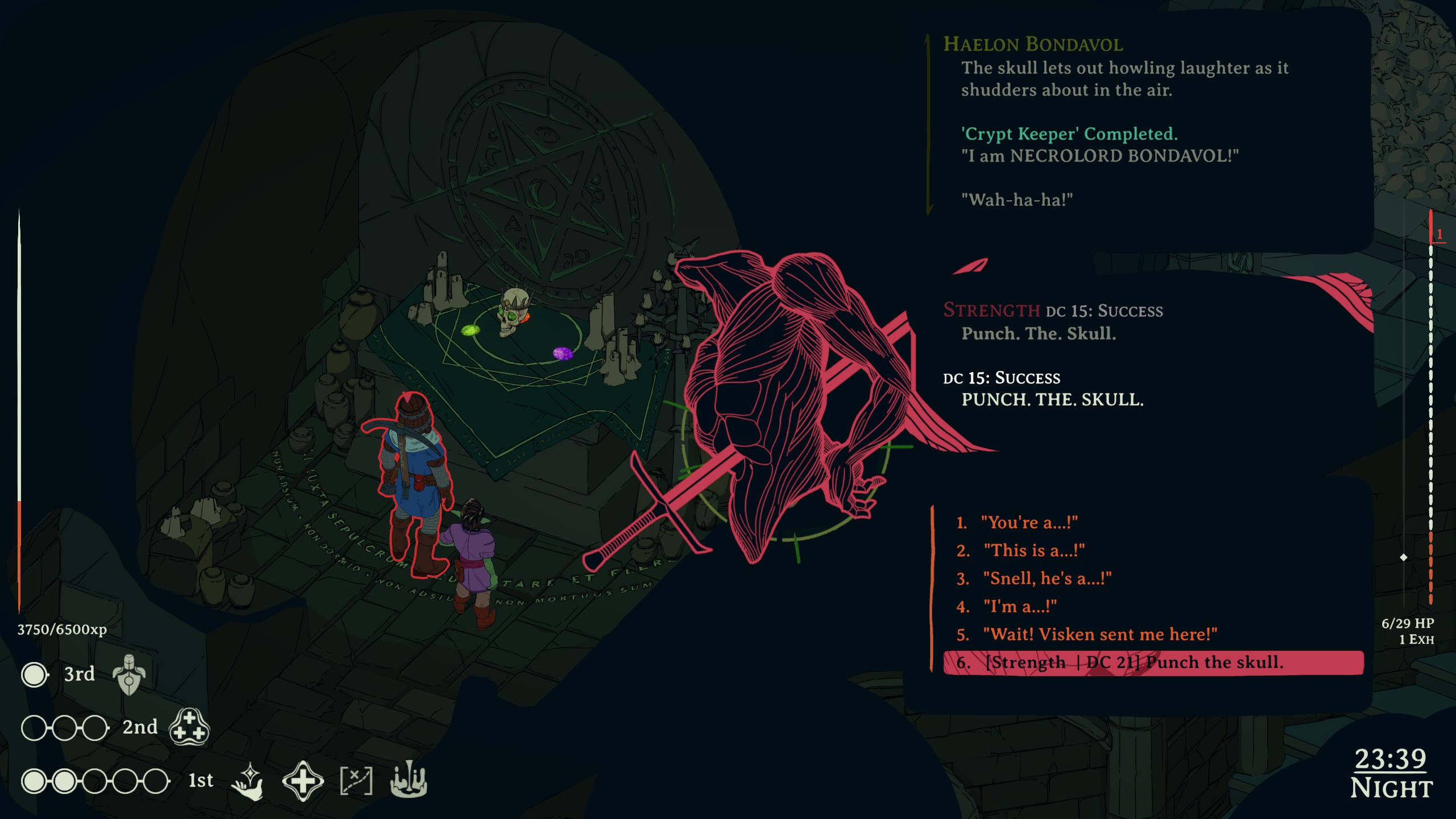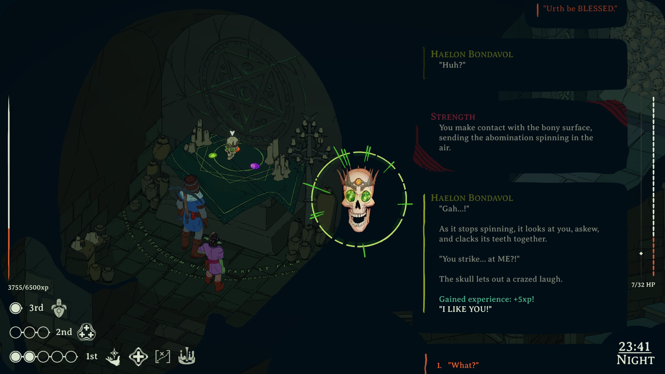 >>735037130>What happens if you punch best bro?That, and then he says he might have to animate your corpse later since you remind him of a punchy lieutenant he raised a bunch back in the day. But then you get a bonus to your interactions with him since he likes your spunk.Strength meanwhile admits you don't have the power to kill him. Yet. BUT WHEN YOU DO YOU WILL KILL THE ABOMINATION