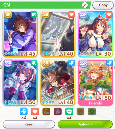 >>735025128Stop using Fuku, she's training wheels but isn't good for building. Use NTR or Biko speed in your borrow slot. But in specifically in your case I would borrow MLB creek and use windy, Kawakami, or sweep if you have them. >bourbon witThe loss in RB bonus is not worth the gold skill. Drop it. Wit maxxing does not work in MANT
