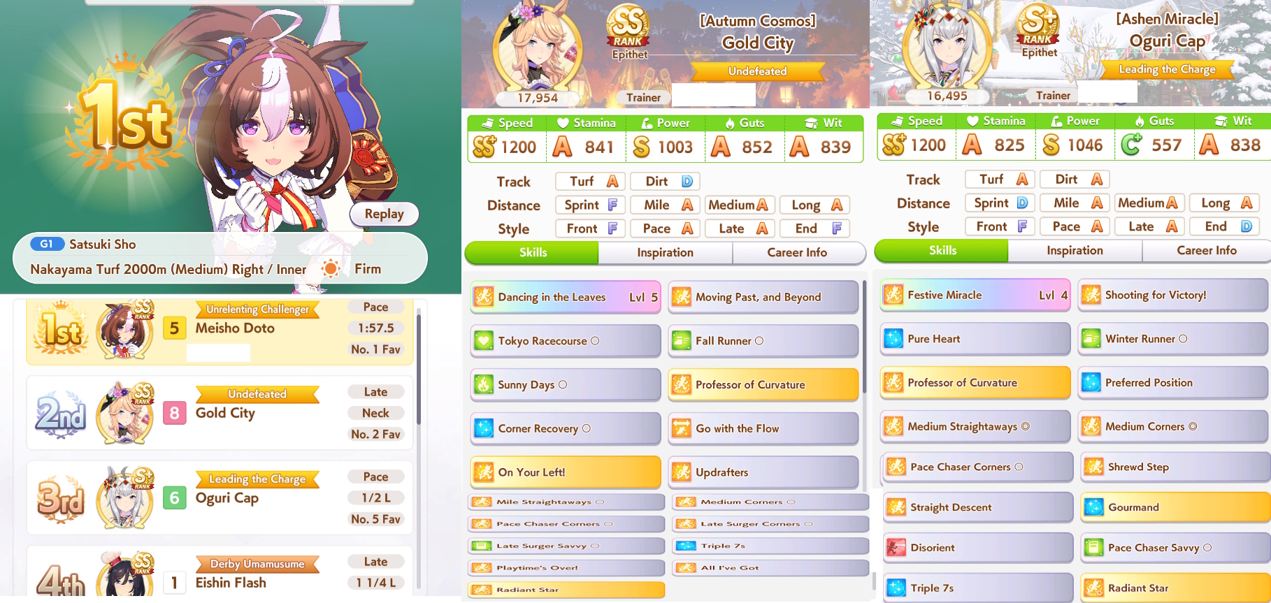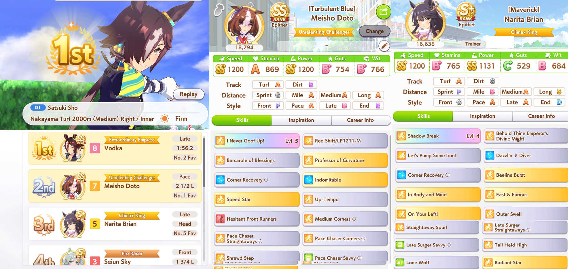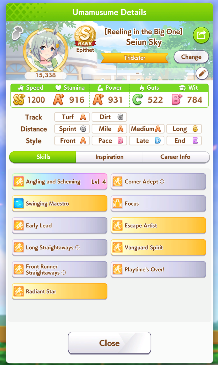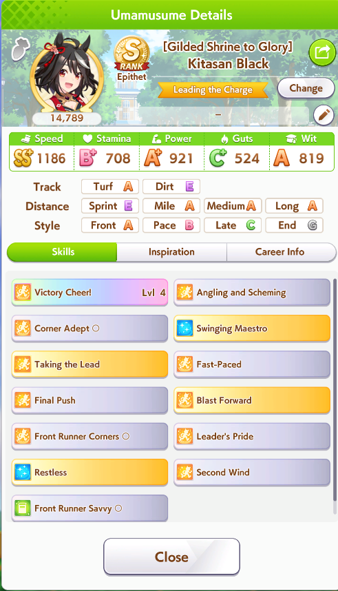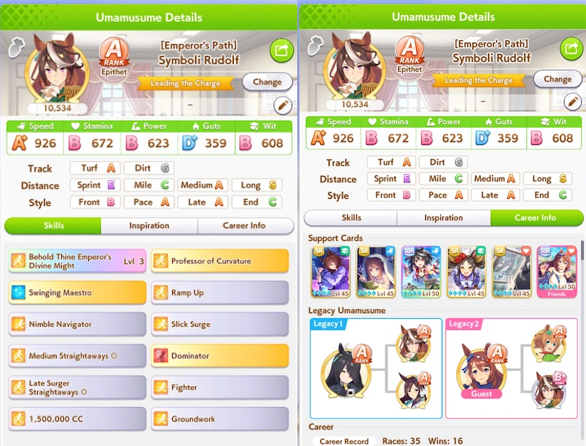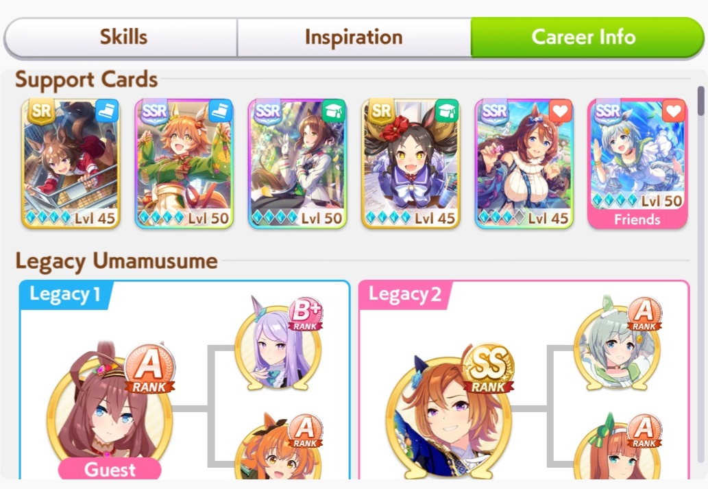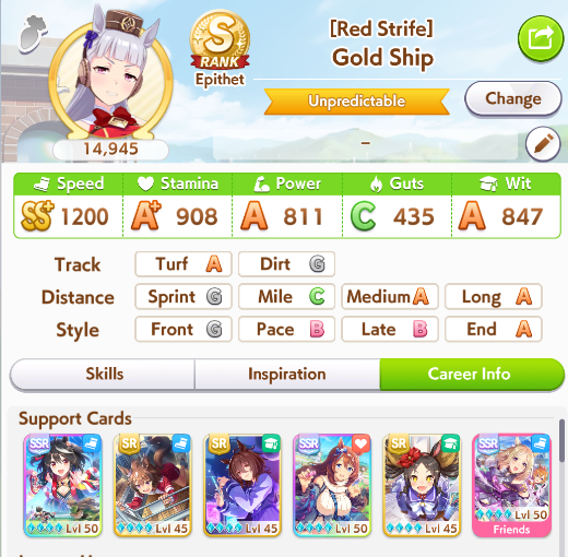 >>735025128I got 1100/1200/1100/500/500 Tama borrowing Rice.The deck is Sweep/Kita/Tachyon/Hishiama/Marvelous Pow/Rice.Did milelet rotation, might be better if I got more speed sparks.