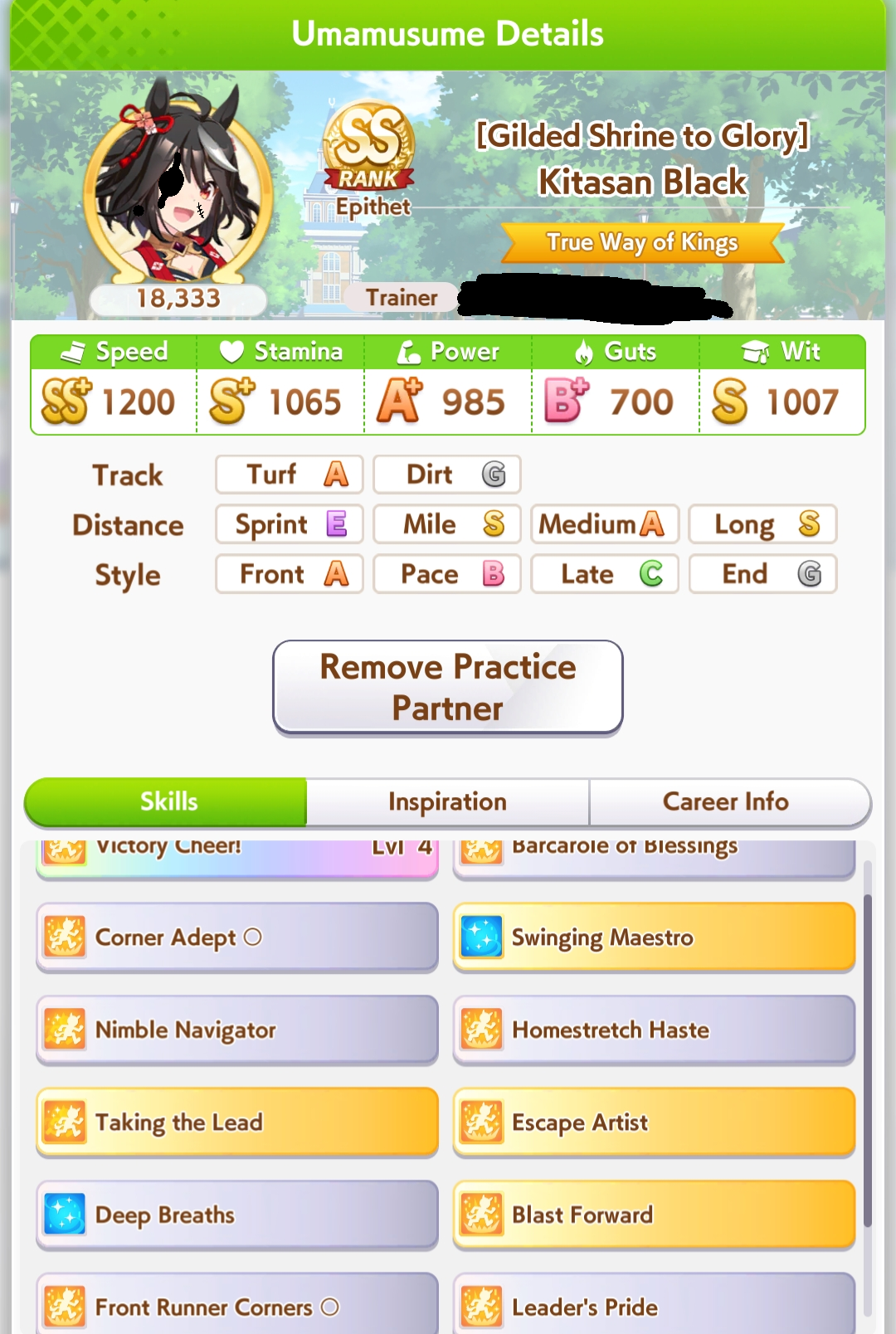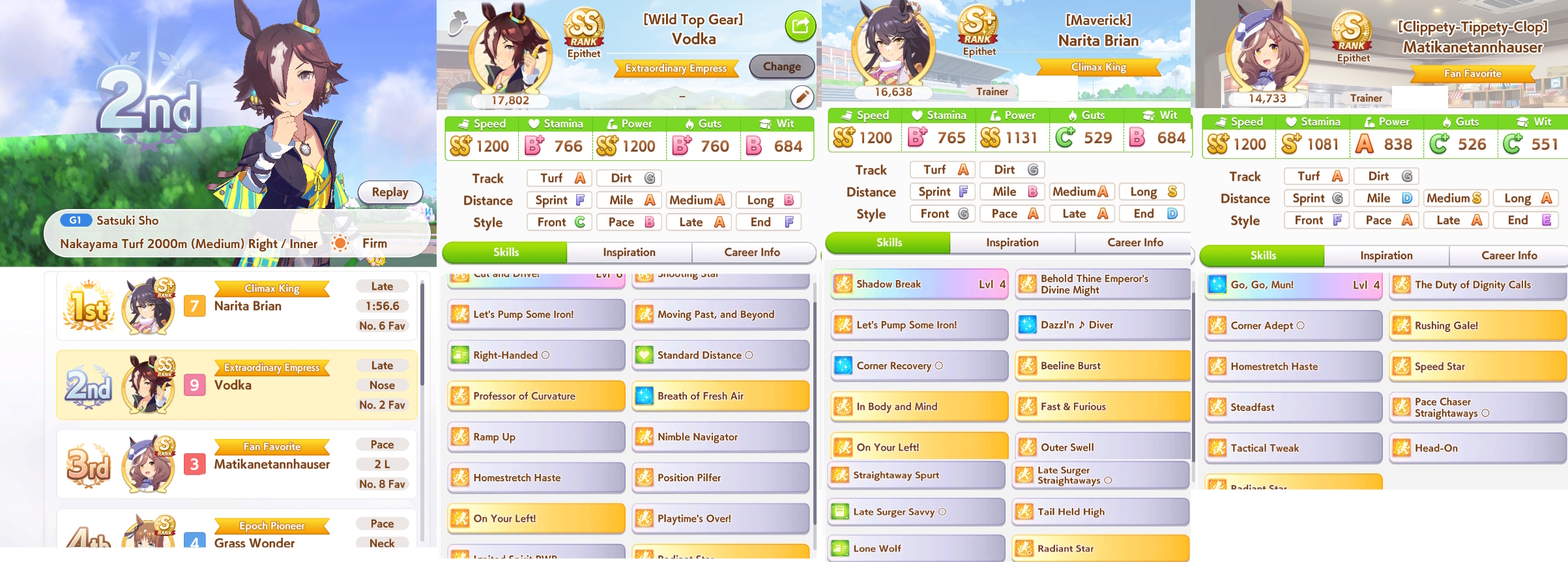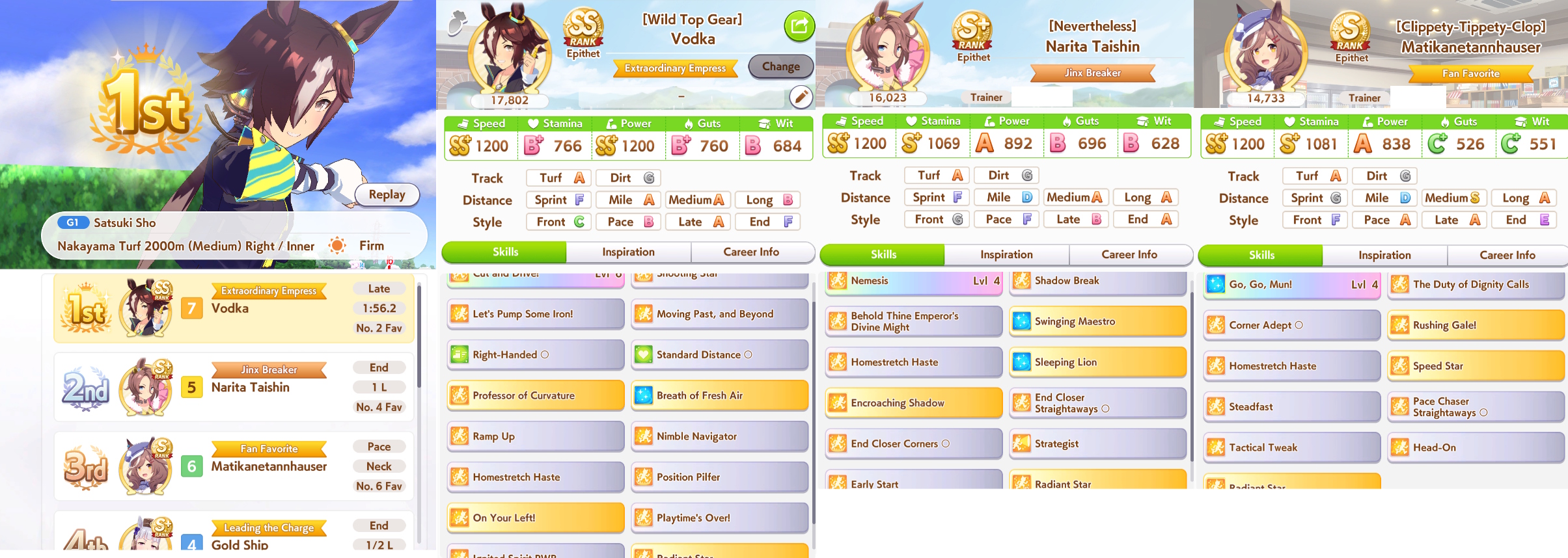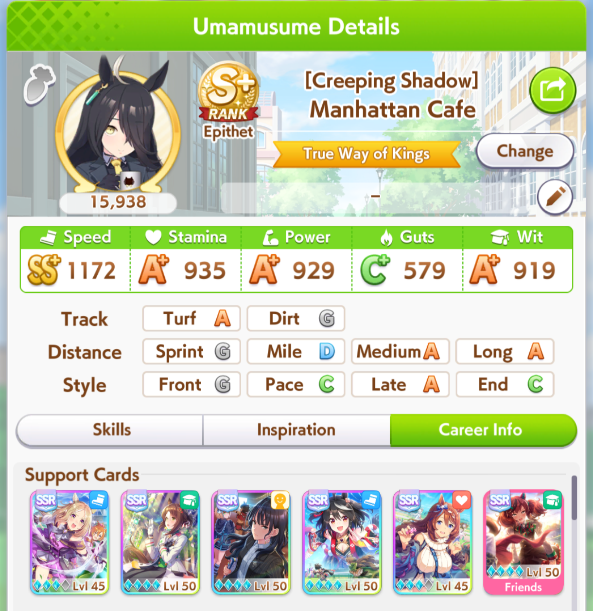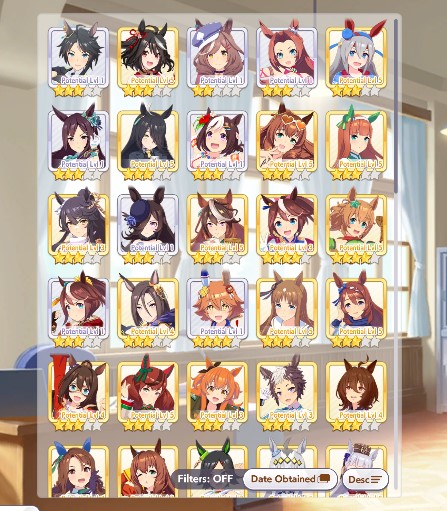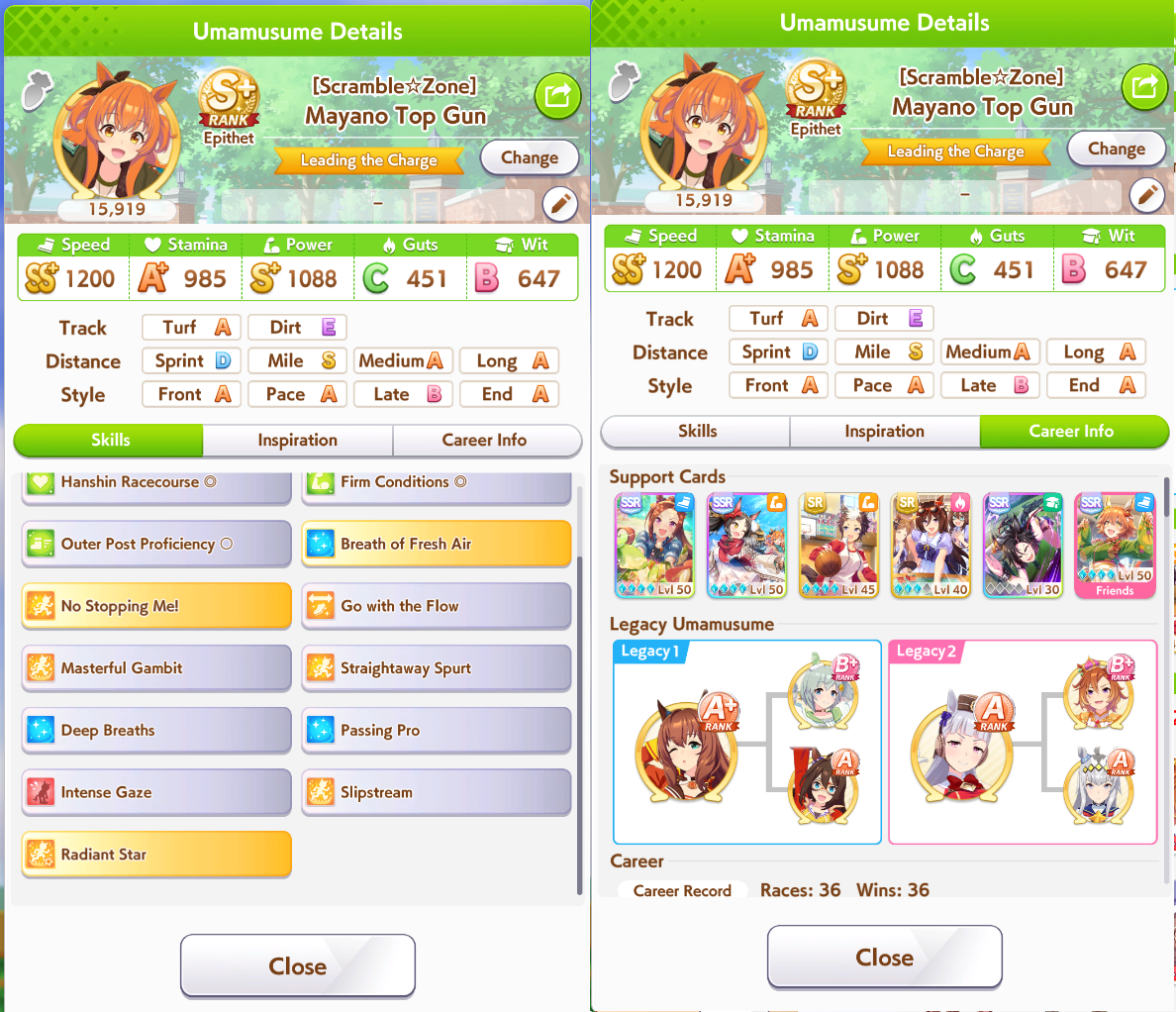 >>735025128I got 1100/1200/1100/500/500 Tama borrowing Rice.The deck is Sweep/Kita/Tachyon/Hishiama/Marvelous Pow/Rice.Did milelet rotation, might be better if I got more speed sparks.