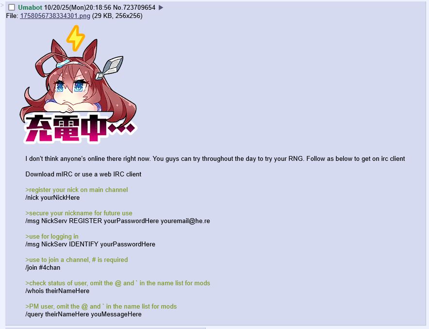 >>735026358Afaik you don't have to download anything, just connect to rizon on the browser and follow the guide