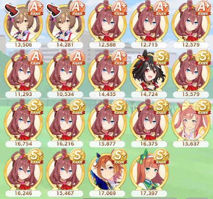 >>735025702S and S+, sure with the odd A+ I got on taishin for being the greatest potential uma. SS or Ug? 16k seems like the limit of my skill or luck at the moment.