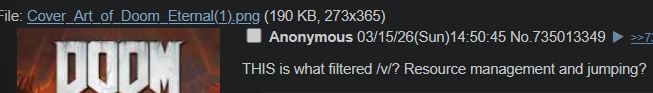 Doom Eternal caused /v/ to seeth longer than Cuphead, Sekiro and Elder's Ring.