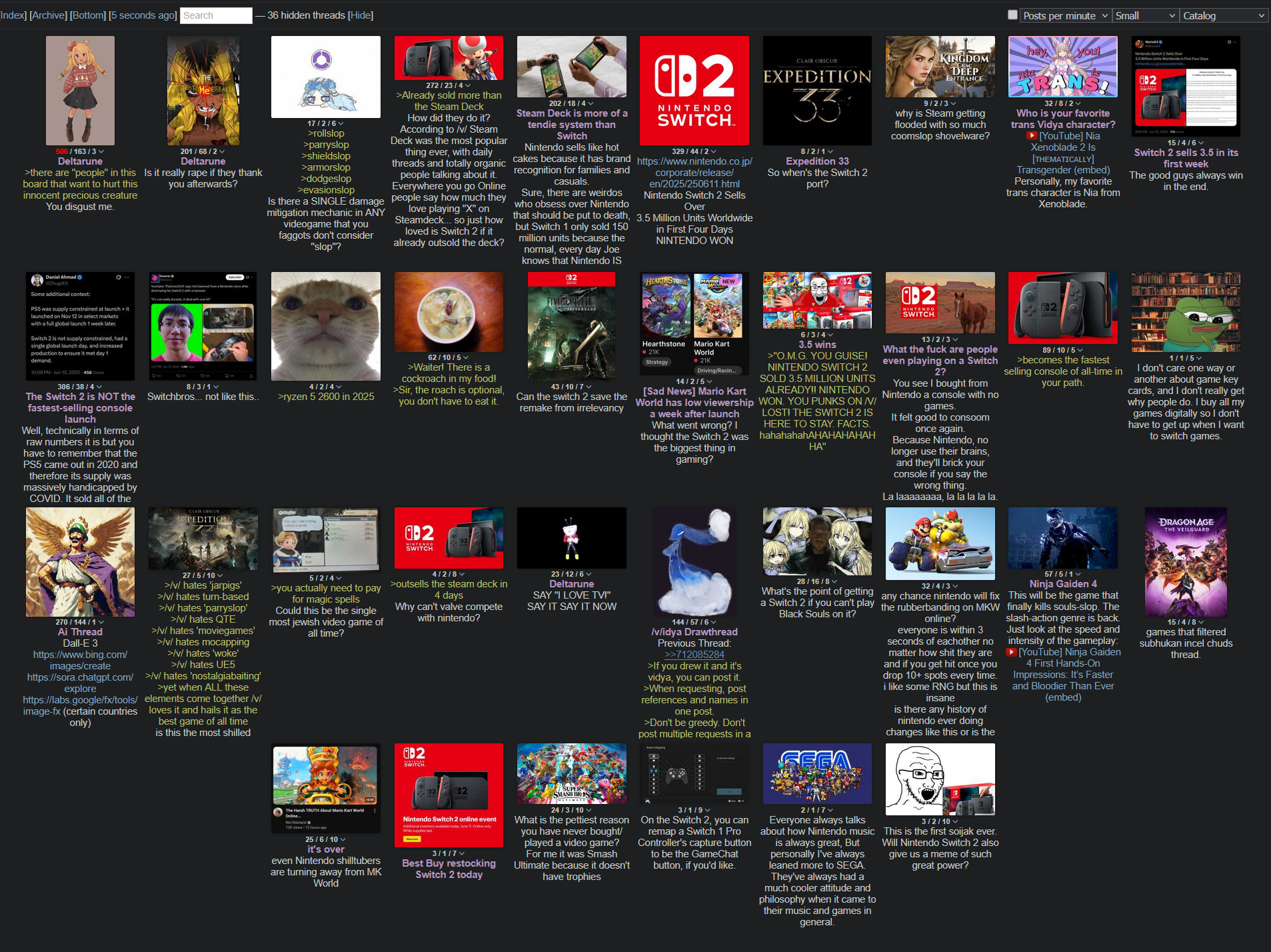 >>735016158it's a couple dedicated shitposters who mostly make up of the "we" at best.happens with every franchise. the "FONV is tranny game" is <10 people spamming threads. the "zoom eternal" is <10 people as well, but they are the people who are most invested into the contrarian line of trolling so it looks like the "board" when it's just a couple dedicated shitposters.next time you see one of their shitpost webms or images or whatever do a reverse search on the archive and you'll see the same md5 and samefilename shows up hundreds of times because these people aren't smart