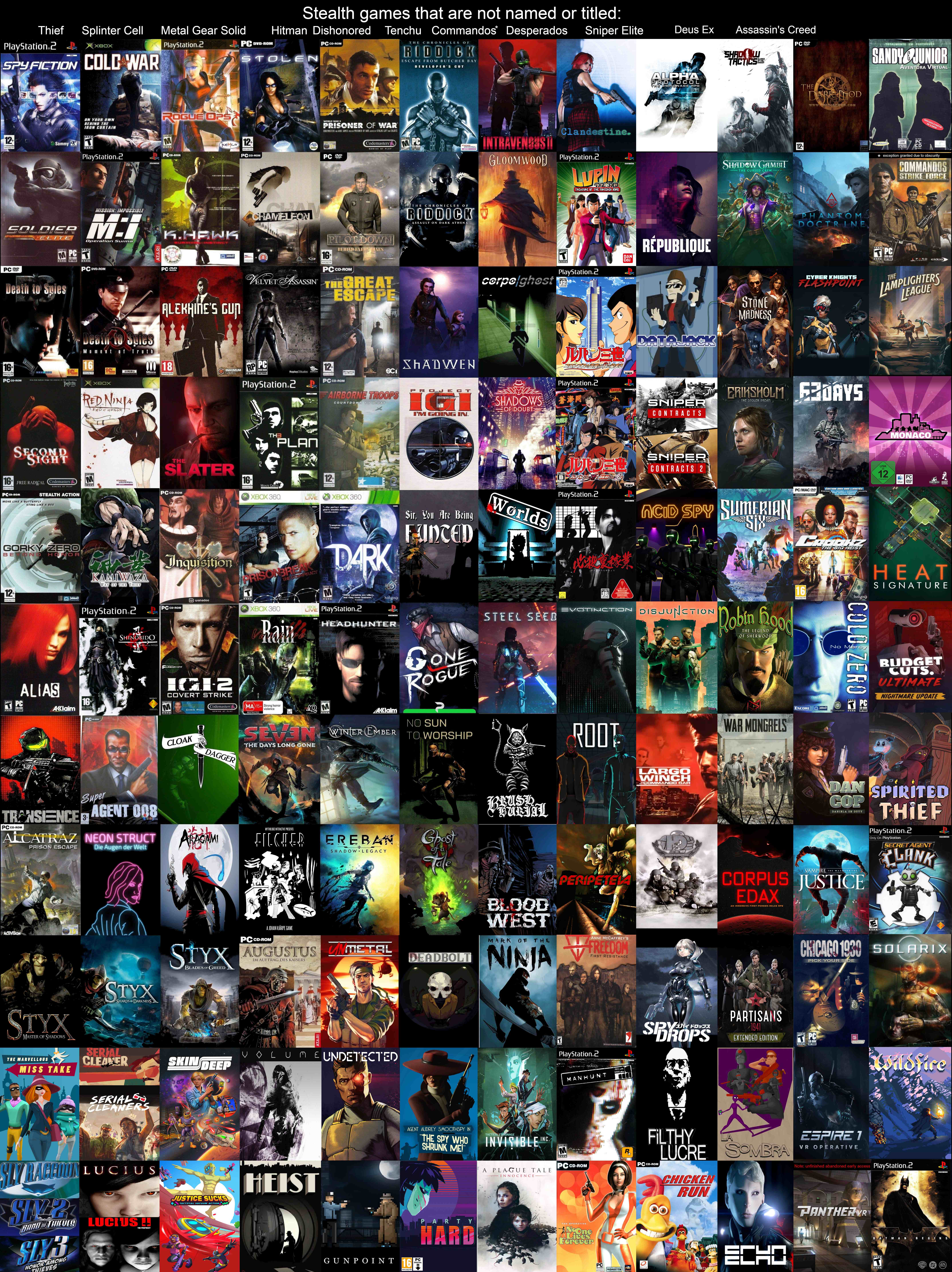 >>735017135There's not much to play as I've told you outside what i put in that image in the last thread you made, if it was you who i spoke to that is. In regards to asking for hardcore stealth. That's hard to come by. If you've played every Splinter Cell, Every Thief game, Every Metal Gear Solid, Every Hitman, Every Sniper Elite, Every Tenchu, Commandos or Dishonored then you can scroll this image for what you missed in the more mixed reception games at times. However i will include a pastebin of upcoming games. The image has been updated to include a few more obscure games.https://pastebin.com/1vuVg3D8