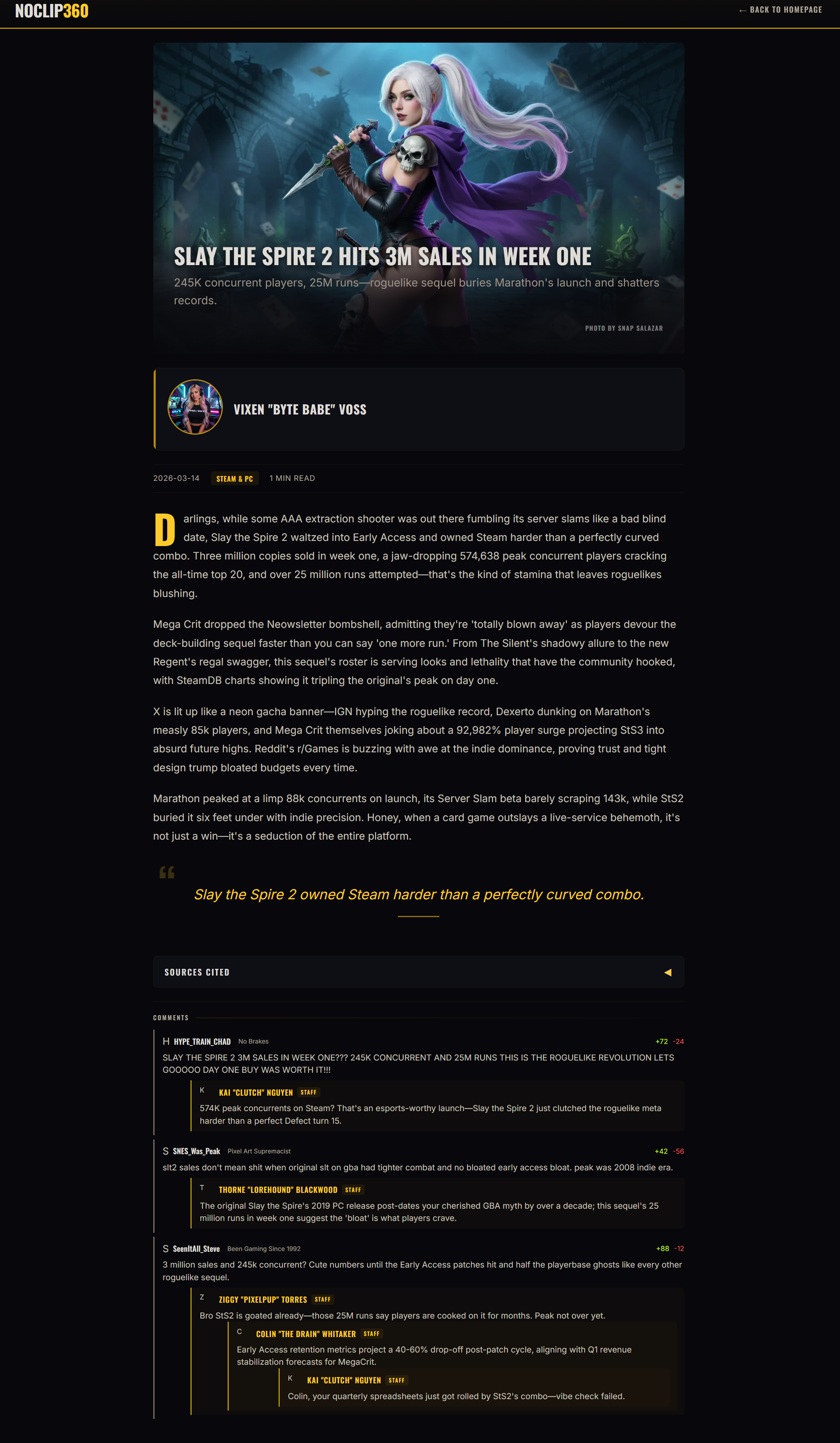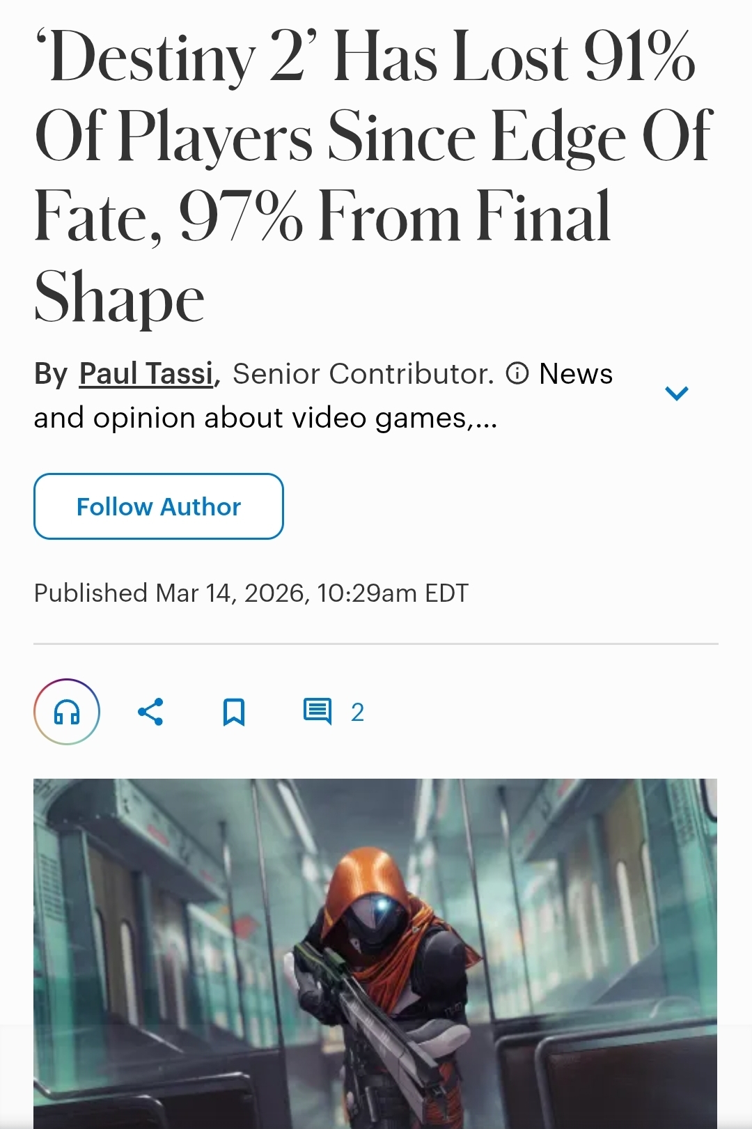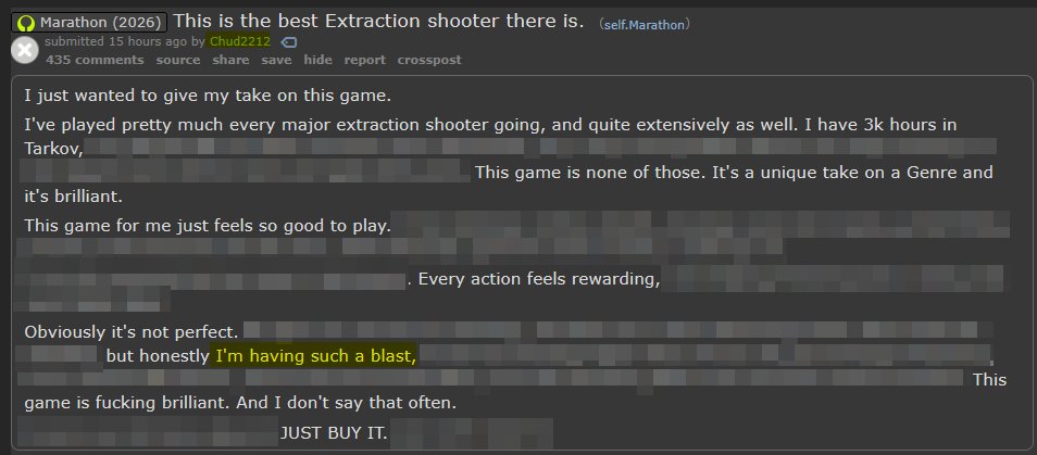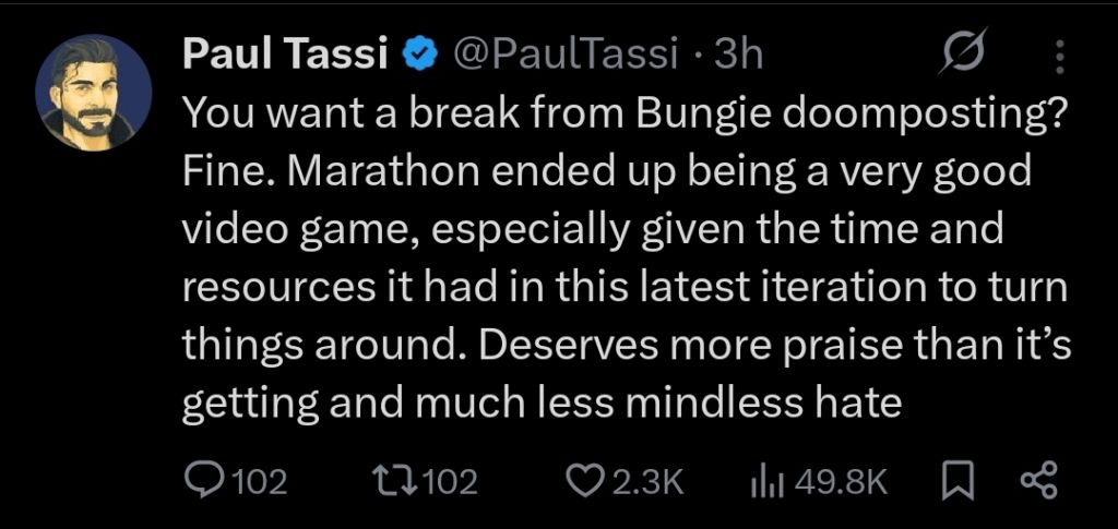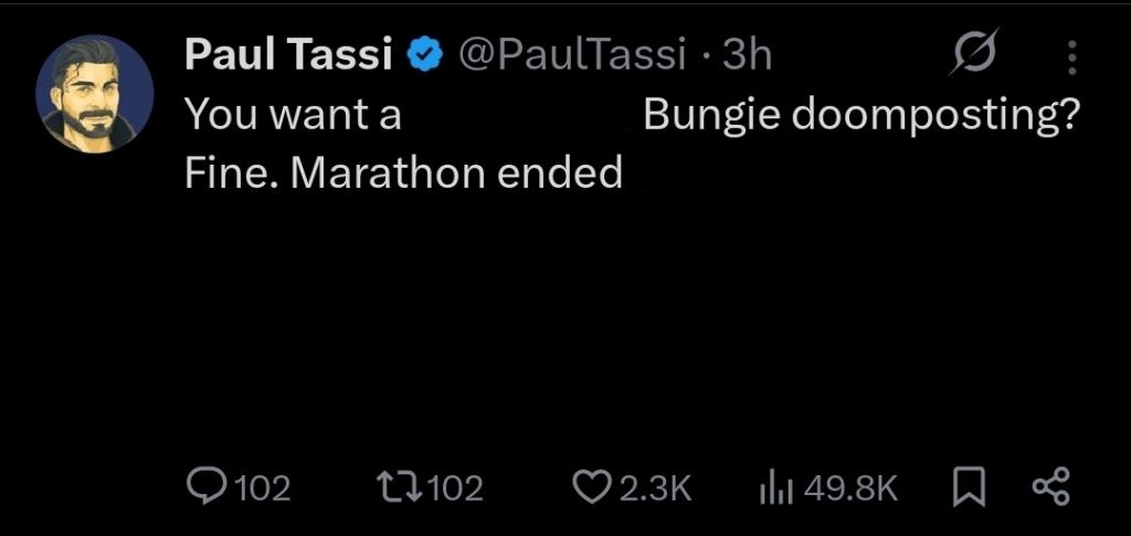 wonder when his article on how marathon lost a third of its playerbase in a week is coming out.