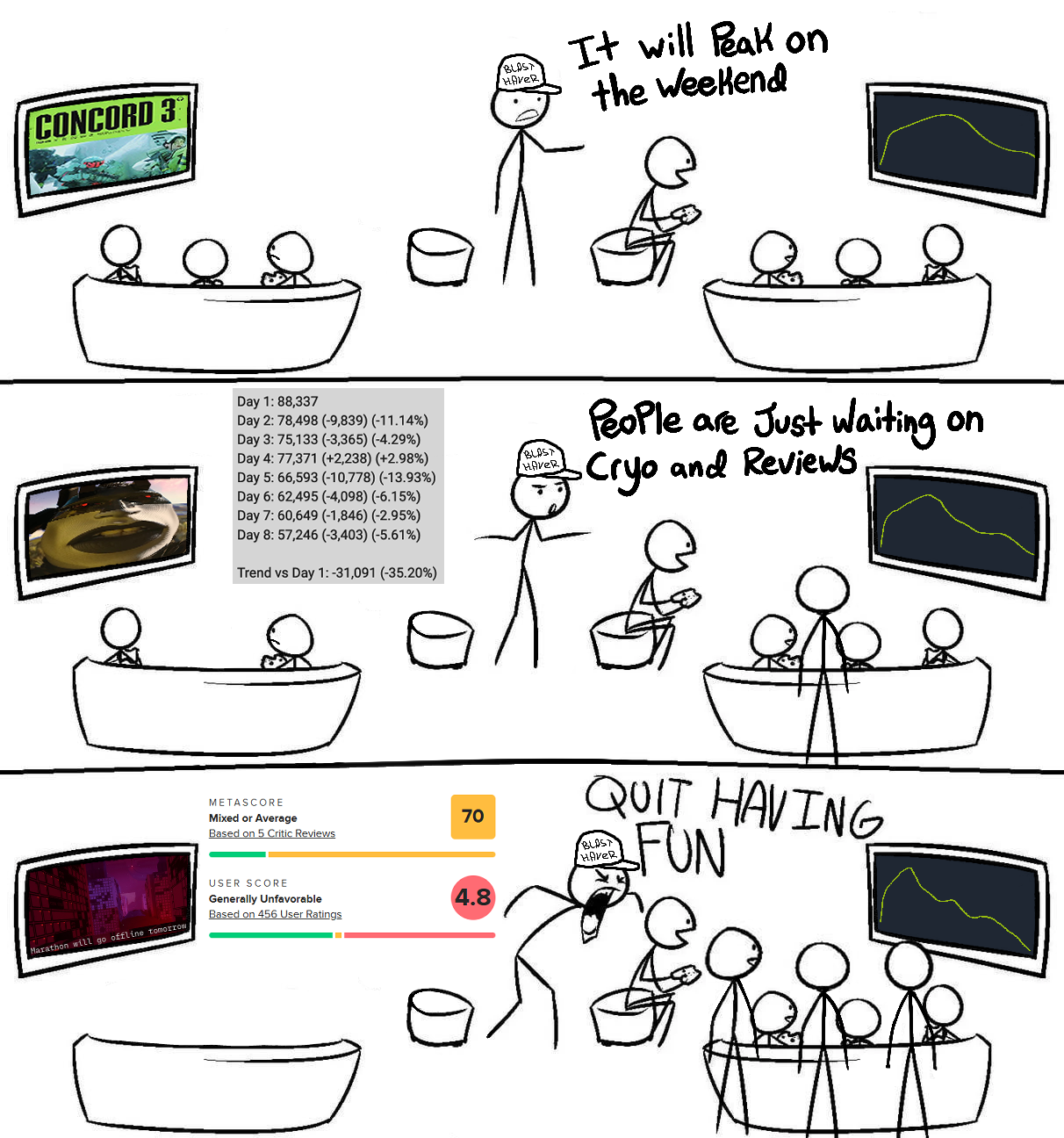 The fact chuds went from>Concord 3!!!to>Uhh well bungie will pull the plug by the end of the year!!Is all you need to know about the vibe shift