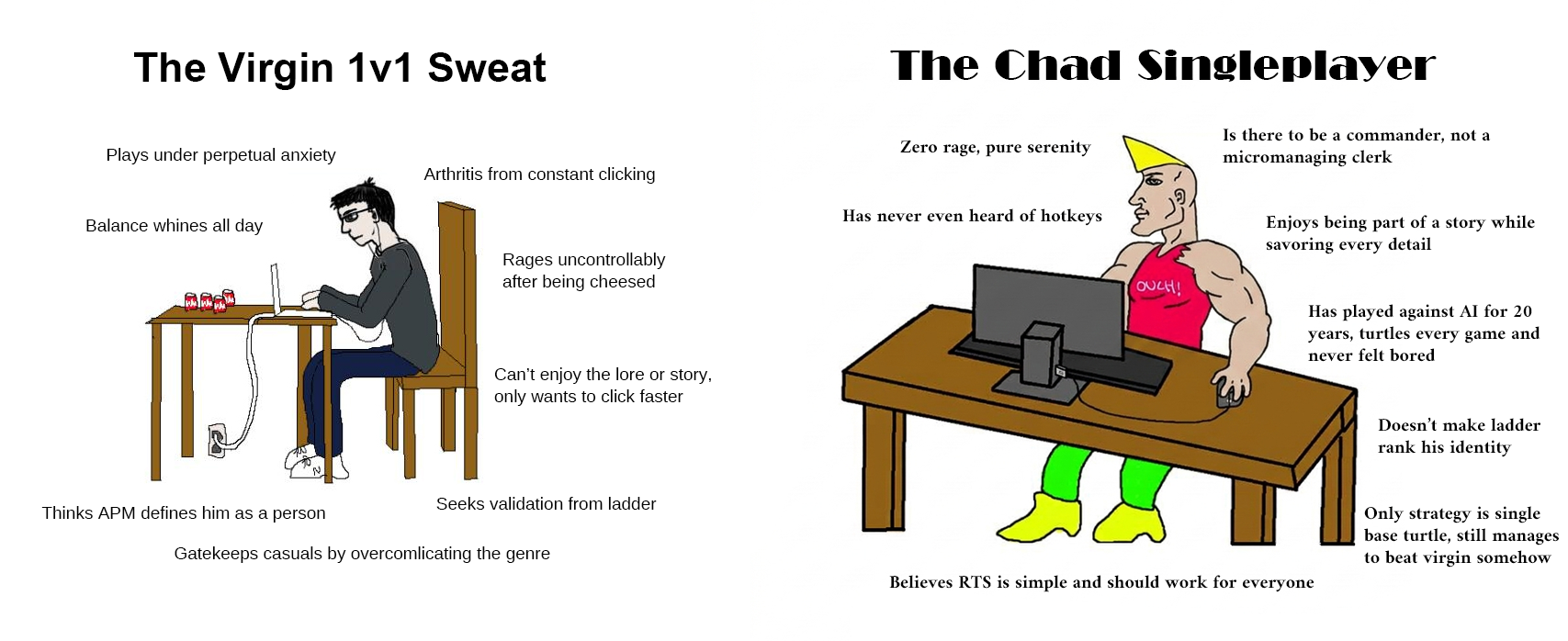 >Playing Ranked>When there are Campaigns>When there are Scenarios>When there is Skirmish>When there is Co-op>When there is Compstomp with friendsya dun goofed