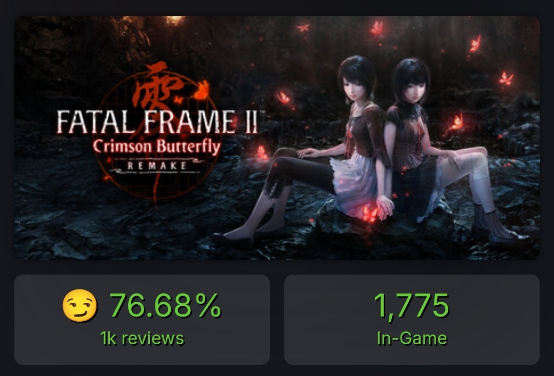 the fatal frame 2 is probably exceeding expectations since KT really doesn't have any for this series. i hope KT opens up a new division dedicated to fatal frame and horror games going forward because I don't see the point of throwing everything on team ninja at this point. might as well just rename team ninja to internal studio 1 at this point since they are tossed around for every kind of project KT needs them for at this point.