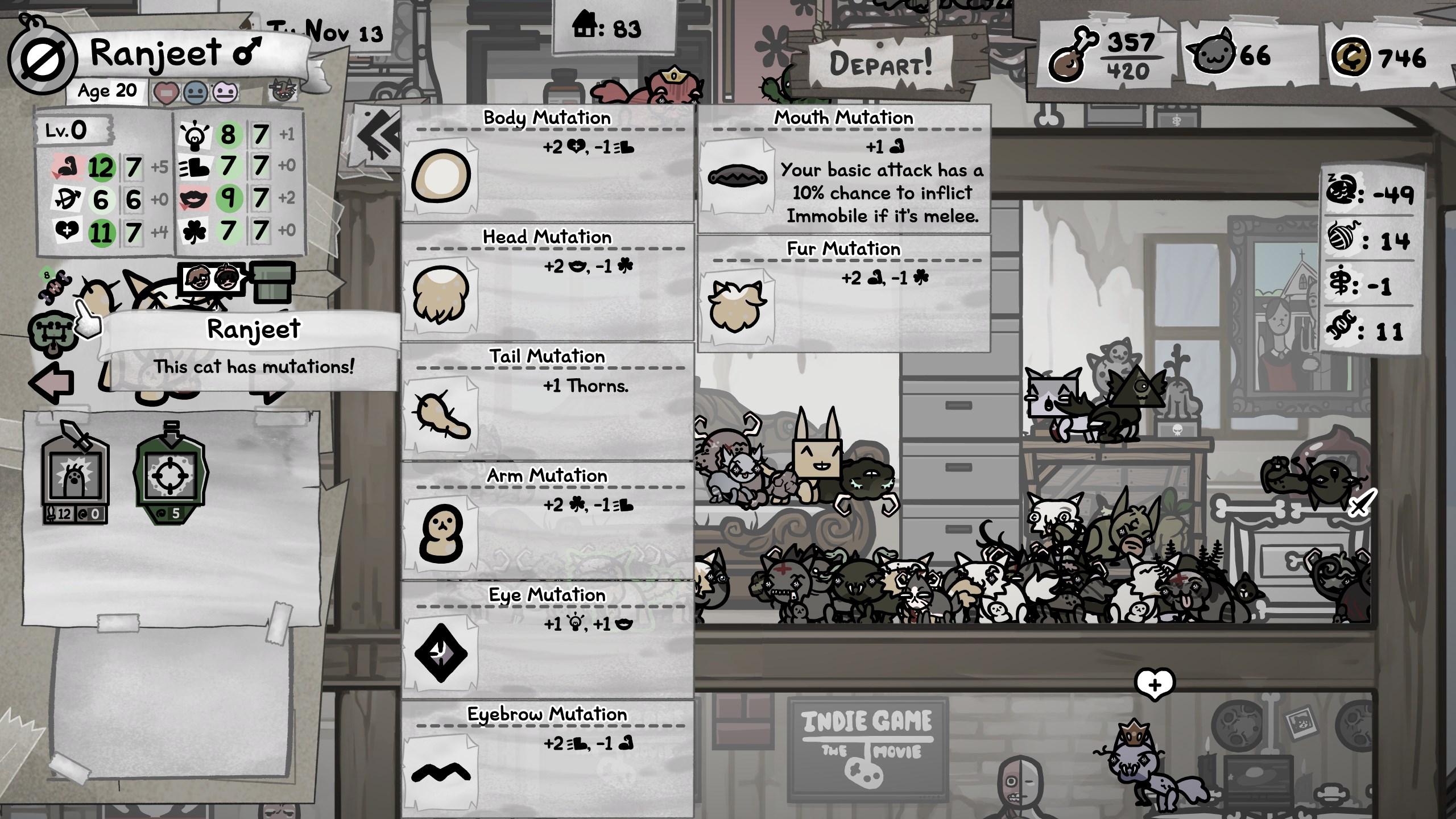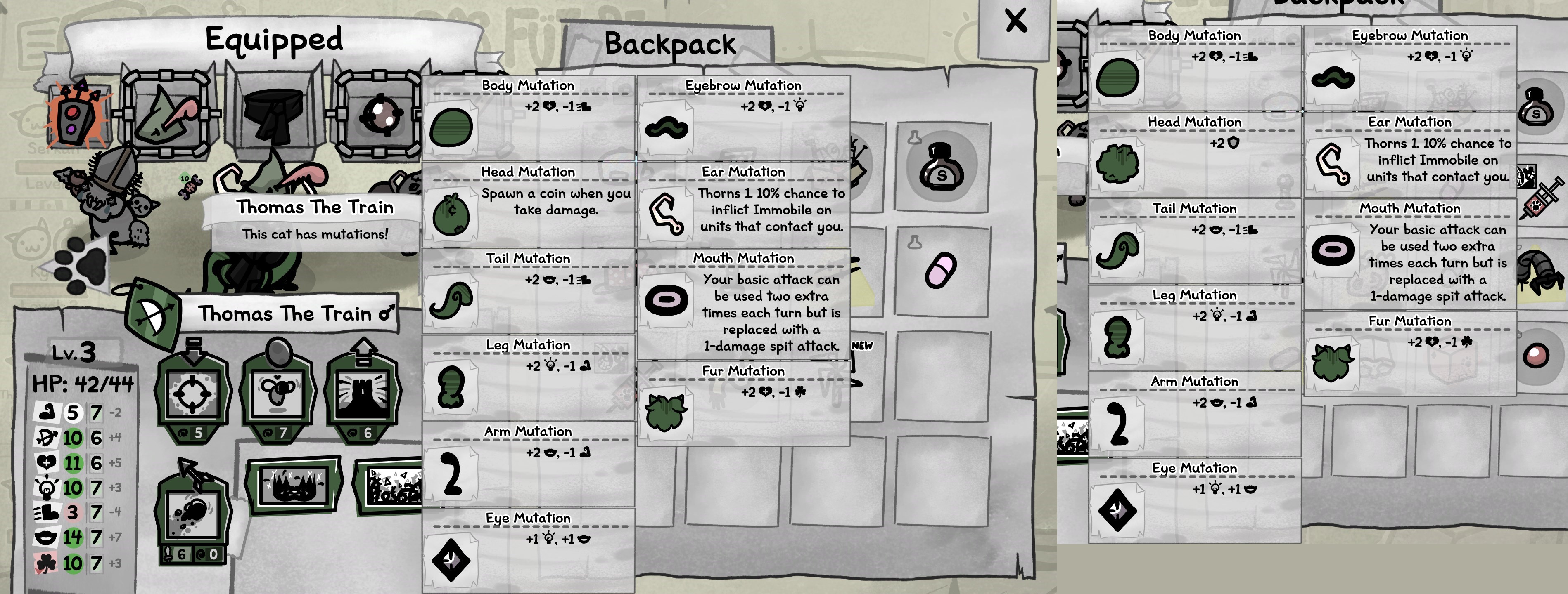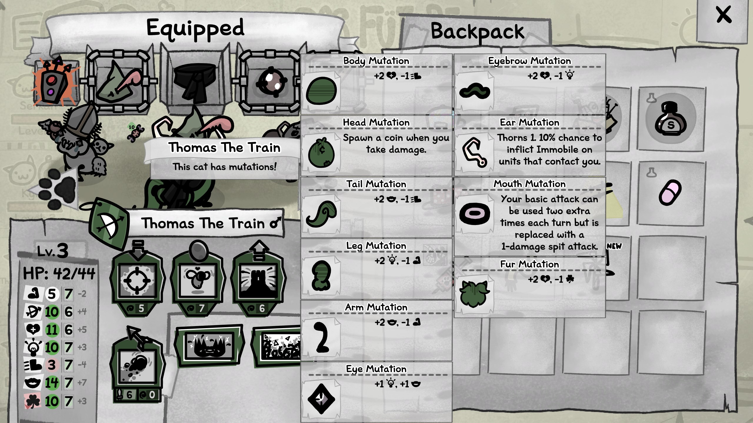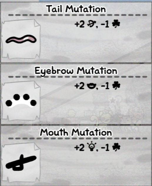 My cat "won" three mutations from events making me lose my reroll eyebrows, my basic attack now inflicts freeze ruining the basic attack stacking I was doing, and I lost my regen eyebrowsEvery event should have an ignore option