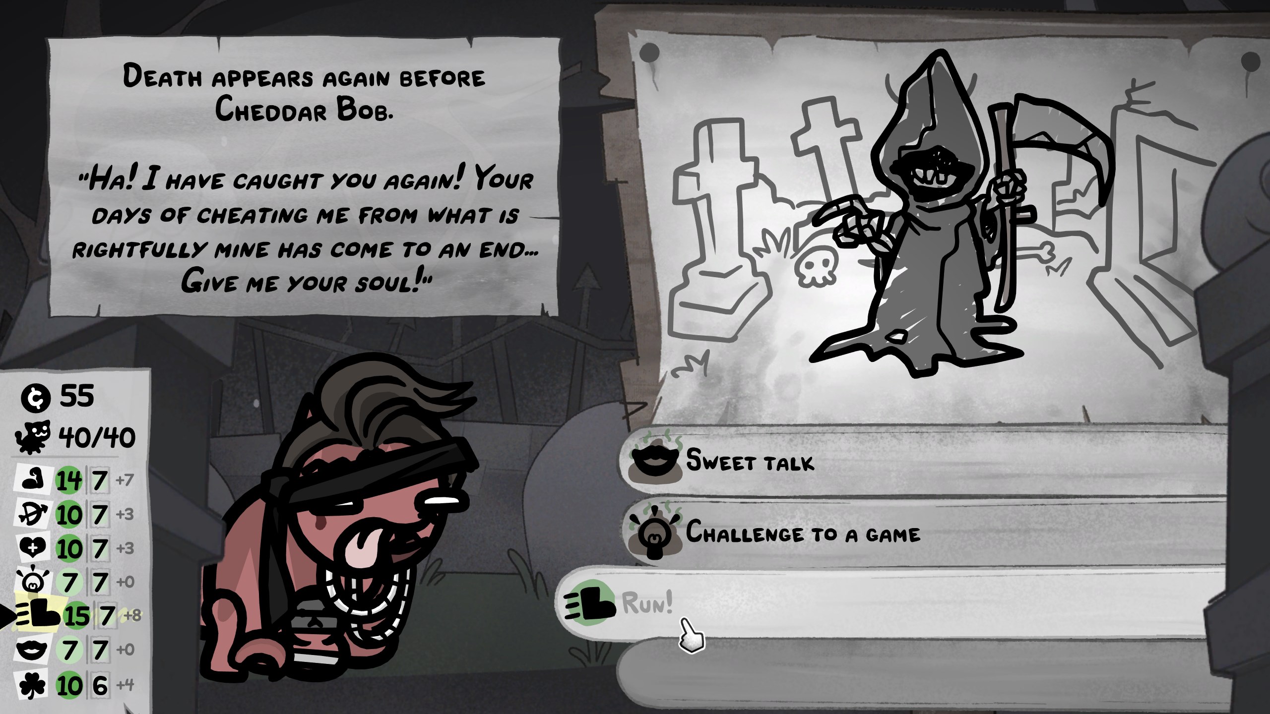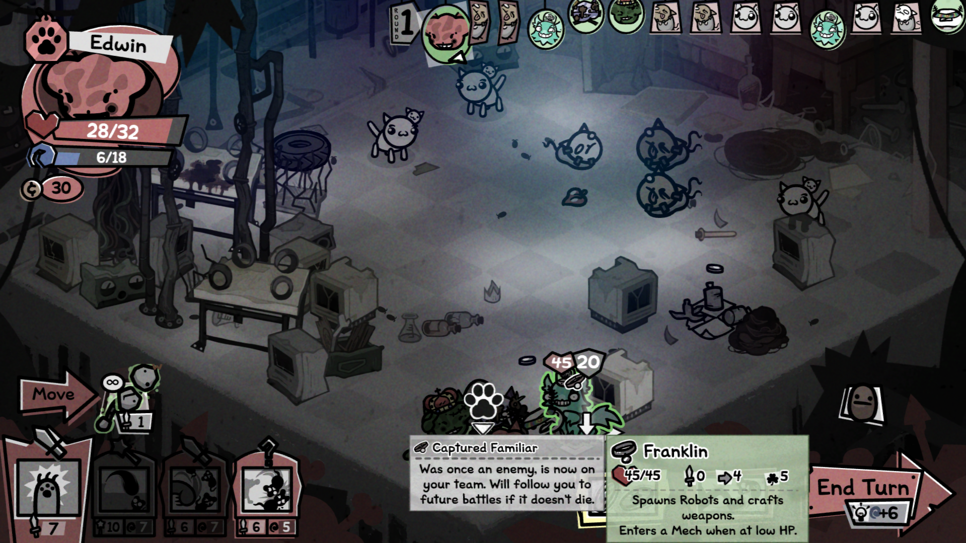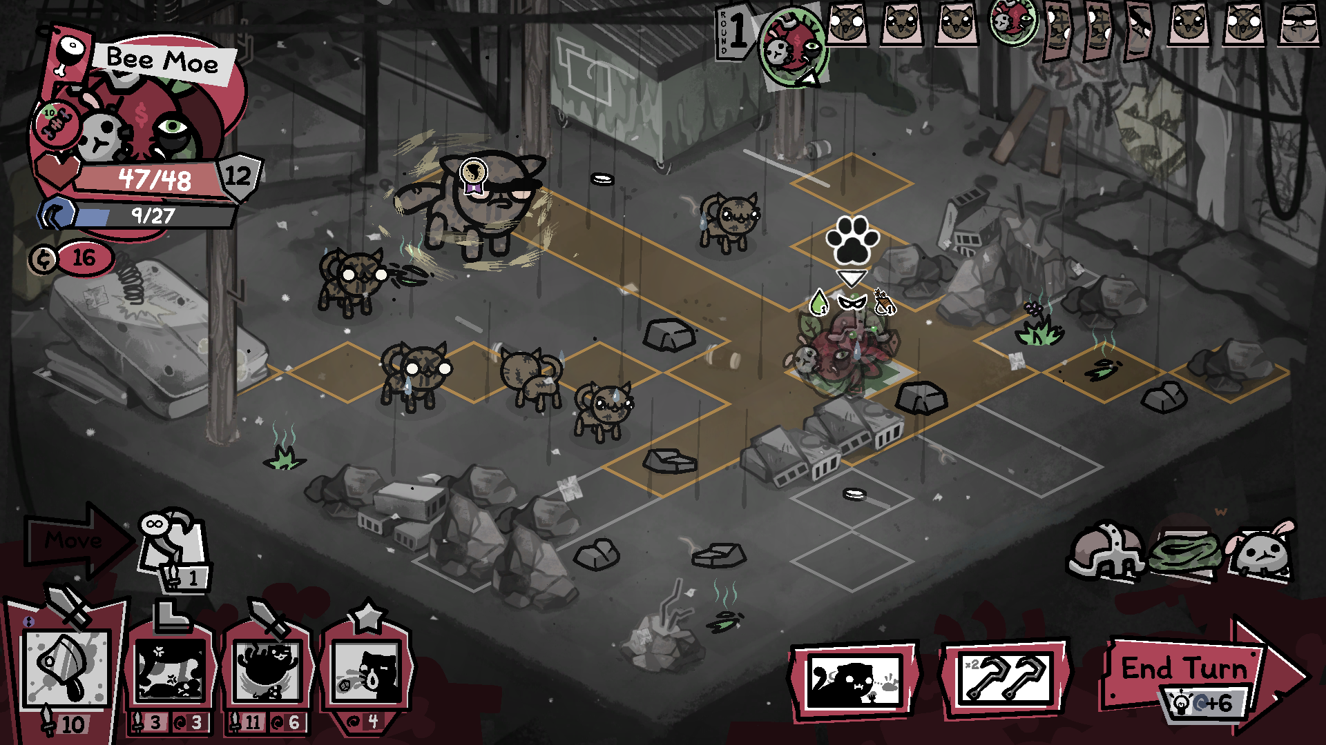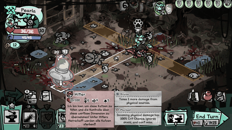 >>735038480Every run is free after you know what to do and you just collect items for retarded 1 turn combos for house boss. It was fun at first but now this game just feels like waste of time. Had 2x hunters, the other was throwing needles with doublecast and big catnip, the next hunter had passive to catch the projectiles as ammo and then had 40 attacks killing the boss before it acts. Just rng slop where you aim to clear everything before engaging with the enemy mechanics like in any arpg.