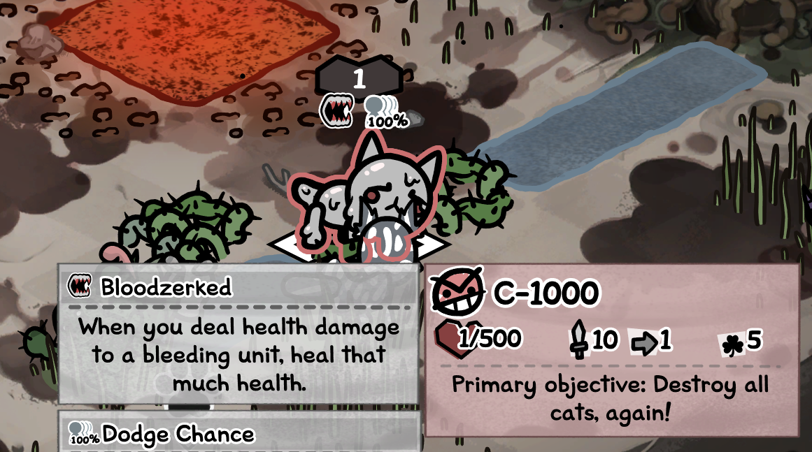 >>735037595general tips:>avoid using any cats with CON and SPD below 5>start breeding better cats, aim for 6's and 7's>always bring a ranged attacker with you>hunter is the best class in the game, abuse thisdesert tips:>rarely (if ever) buy the water bottles, they are a noob trap>focus on killing things before they can harm you>you can break open cacti which spawns water>if it's raining in your home, you will get a rain event, take advantage of this to make desert runs trivial