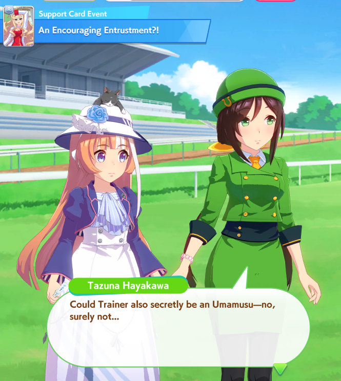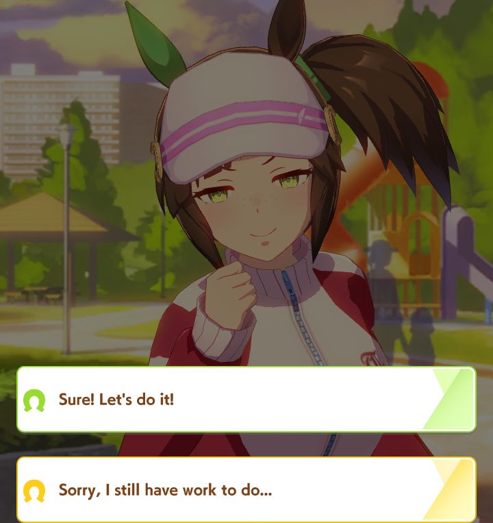 >>735054453Honestly I only expected to play it two days before dropping it. I only picked it up purely from curiosity. The only reason I stuck around is because I picked Teio with a selector, got hooked then rerolled for the anime one and the Kitasan card.