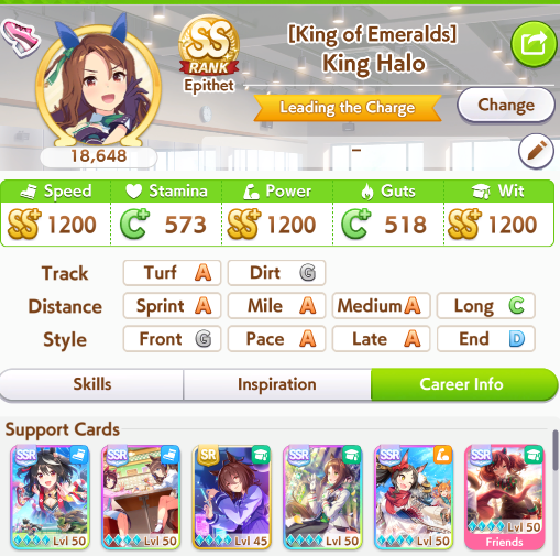 >>735054510Fuku is dogshit unless you're going for the highest of highrolls because 0 special priority means you're never getting double rainbows during summer without double digit whistles, and the only thing Fuku is actually valuable for is the 30 to all stats at the start which you can get from SSR Jordan in Speed and Power which is all you really need to ensure you start winning early races. TE still matters a lot for getting the big rainbows during summer.