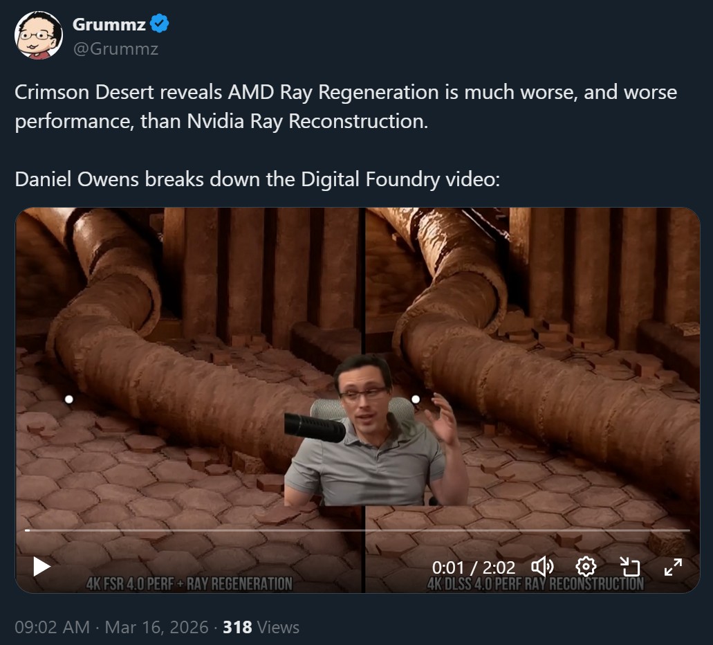 >>735071743The massive cope from mostly snoys around this game has been hilarious to watch. They gloat about the power of their console then say they are fine with 45fps upscaled in the same sentence. That digital foundry video about the denoiser and ray reconstruction really amped up the seething once they saw the difference it makes.